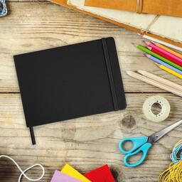 Скетчбук, слоновая кость 140 г/м2 210х148 мм, 80 л., КОЖЗАМ, резинка, BRAUBERG ART CLASSIC, черный,