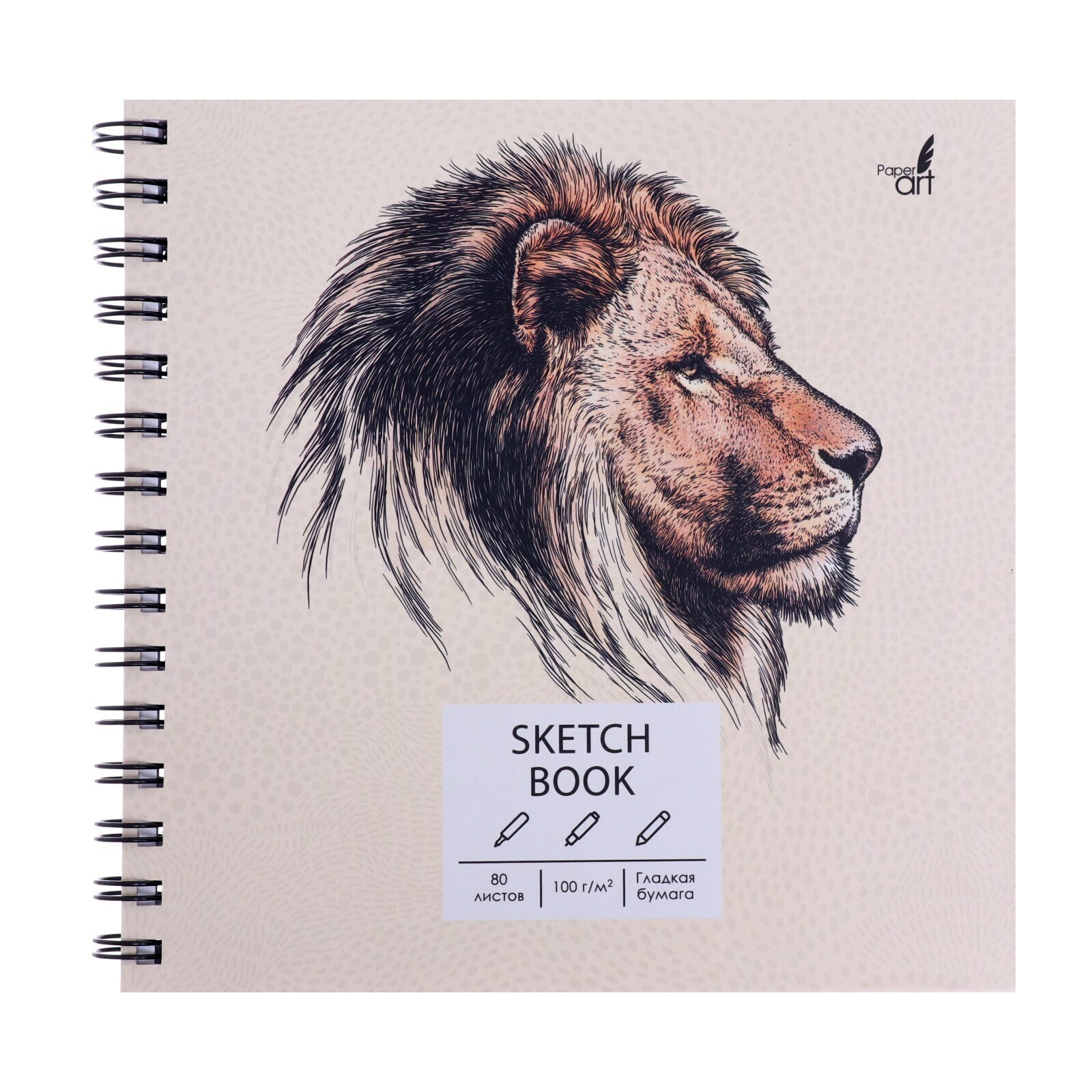 Скетчбук квадрат 195х195 100г/м2 80л на гребне Лев, тв обл,мат лам,бл офс ТС804854