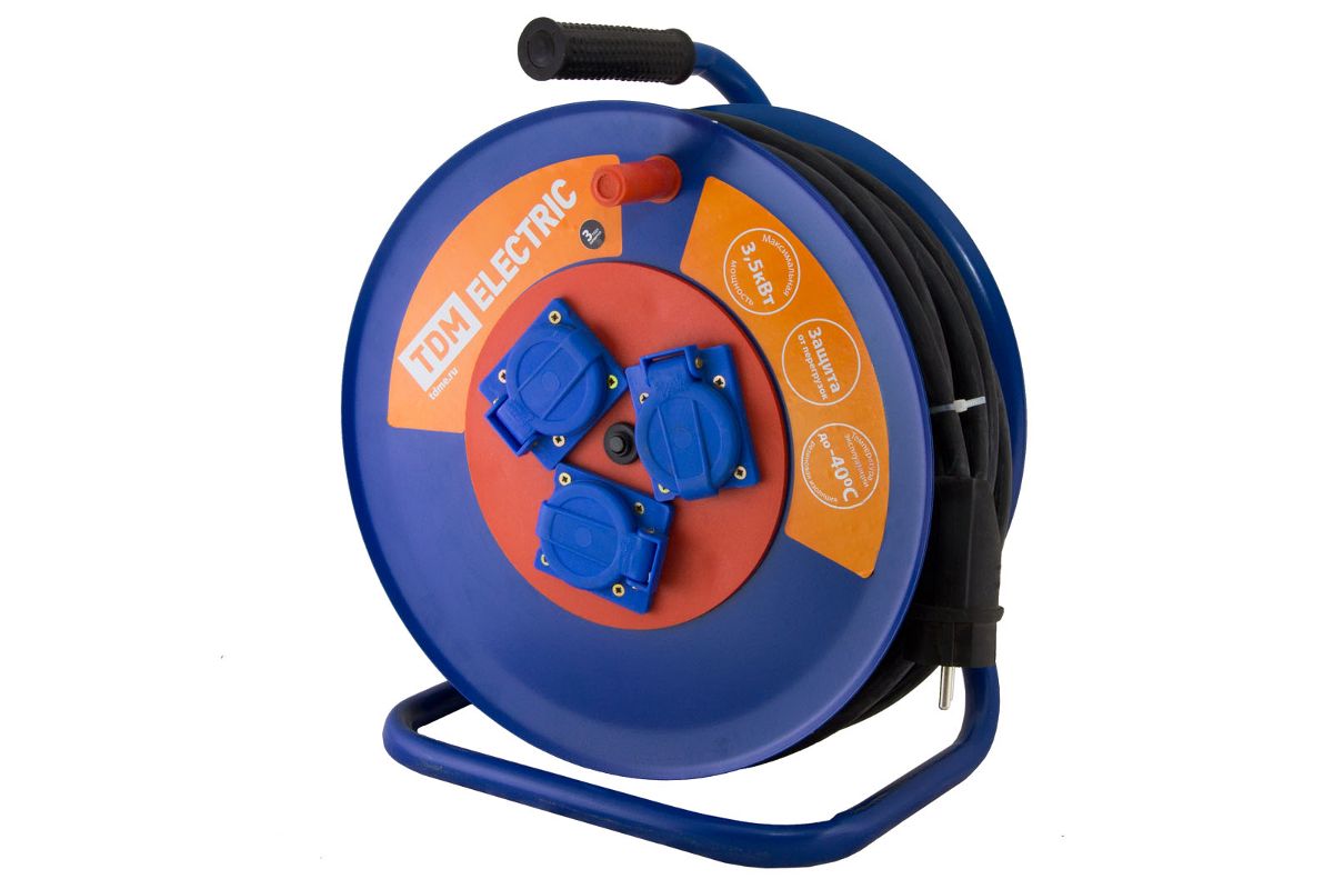Удлинитель TDM ELECTRIC УХз16-003 катушка АЗ.3 места IP44/50м КГ 3х2.5 16А 220В 3500Вт