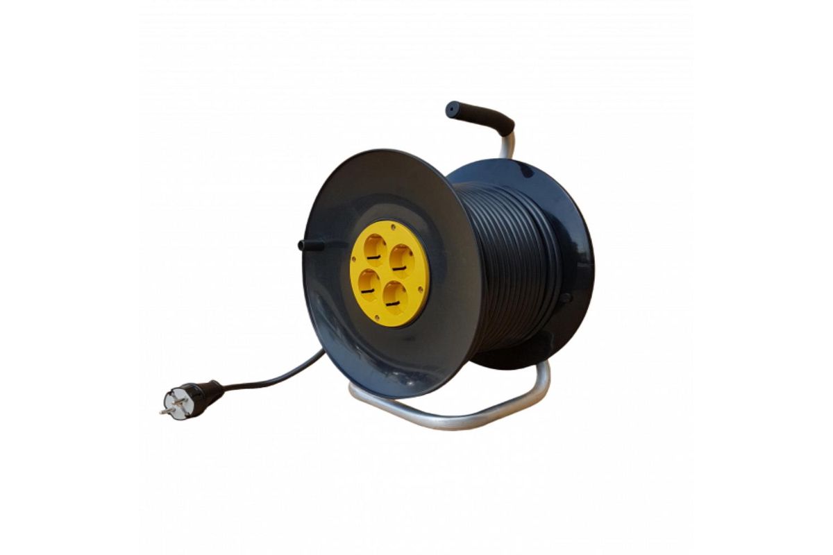Удлинитель на катушке с четырьмя открытыми розетками для работы по дому и даче.