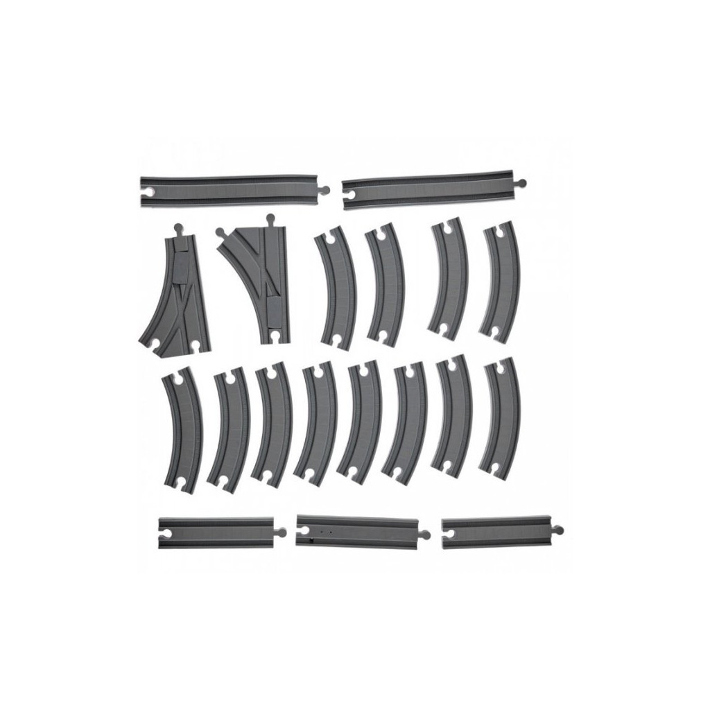 Кожен вагон кріпиться один до одного за допомогою магніту. Вся деталі ігрових наборів виготовлені із міцних, безпечних для здоров’я дитини матеріалів. Локомотив працює від батарейок 1,5V типу ААА. Також якщо потяг наїджає на "спеціальні" колії - дорога імітує реалістичні звуки залізниці.
