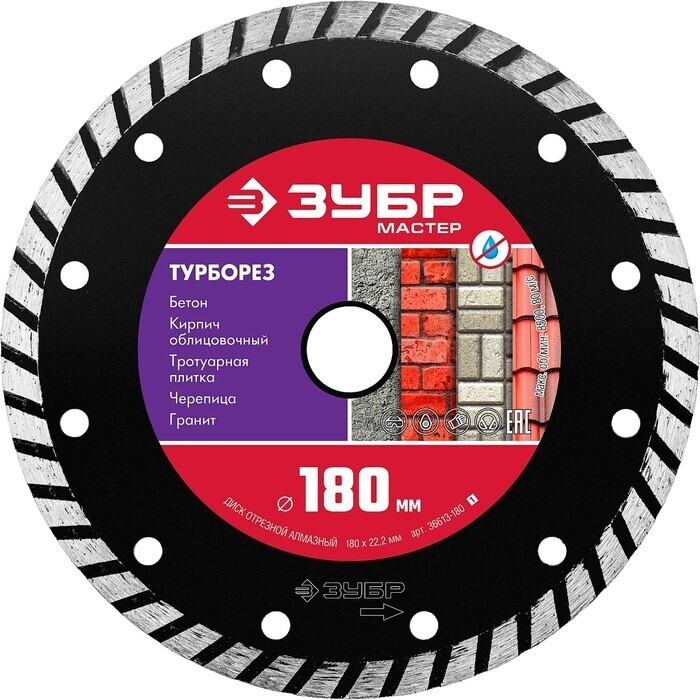 Диск алмазный ЗУБР 36613-180_z01, отрезной сегментиров. по бетону, кирпичу, камню 180 мм
