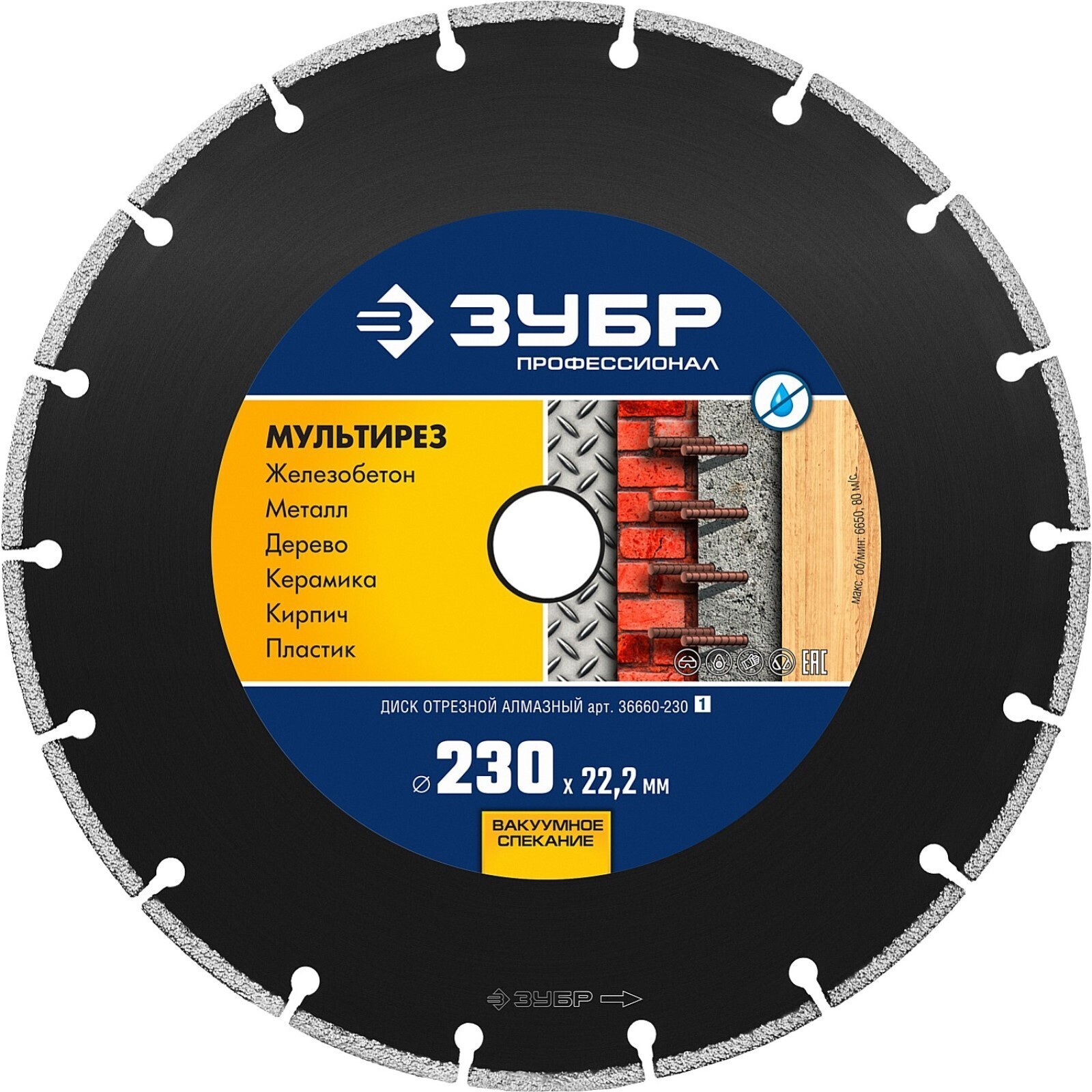 Диск алмазный ЗУБР 36660-230_z01, отрезной, универсальный, 230 мм