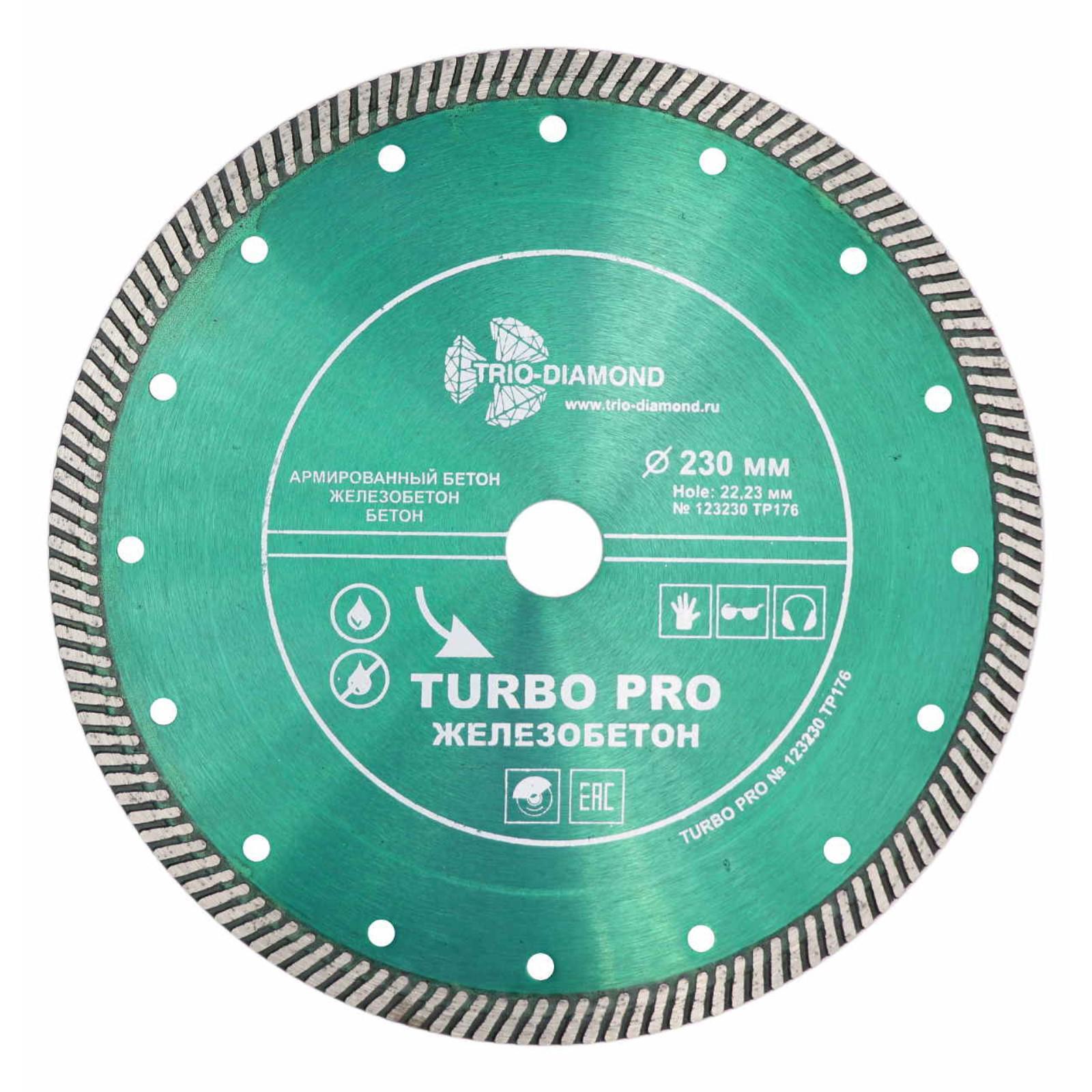 Диск алмазный отрезной TRIO-DIAMOND, Turbo PRO, сплошной, сухой/мокрый рез, 230 х 22 мм