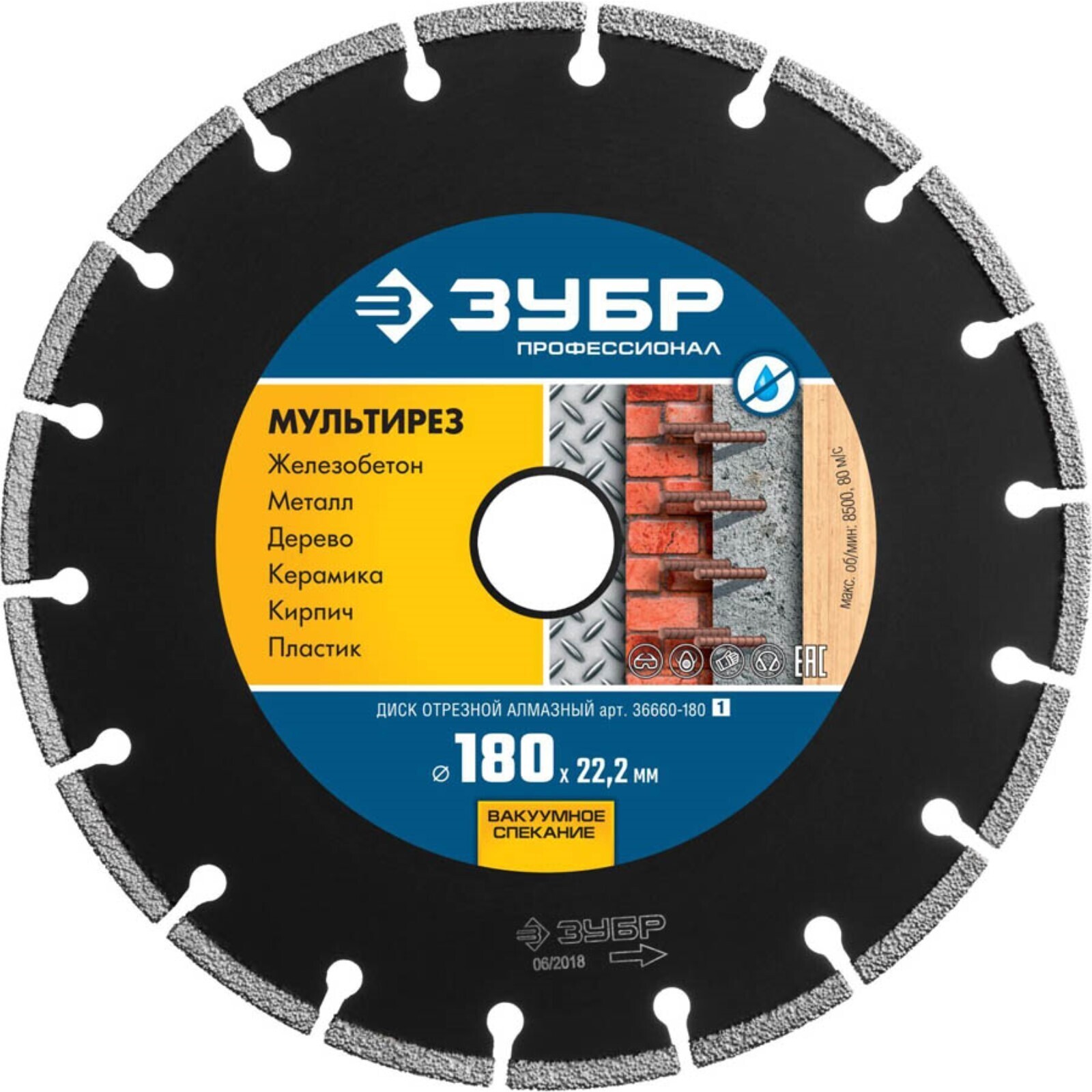 Диск алмазный ЗУБР 36660-180_z01, отрезной, универсальный, 180 мм