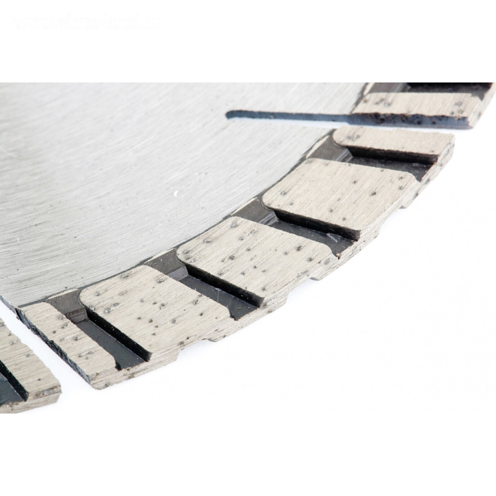 Алмазный диск предназначен для резки (без использования охлаждающей жидкости) твёрдых материалов: бетона, кирпича, шлакоблоков и гранита. Изделие имеет компенсационные прорези, которые уменьшают колебания, шум, а также улучшают охлаждение оснастки.