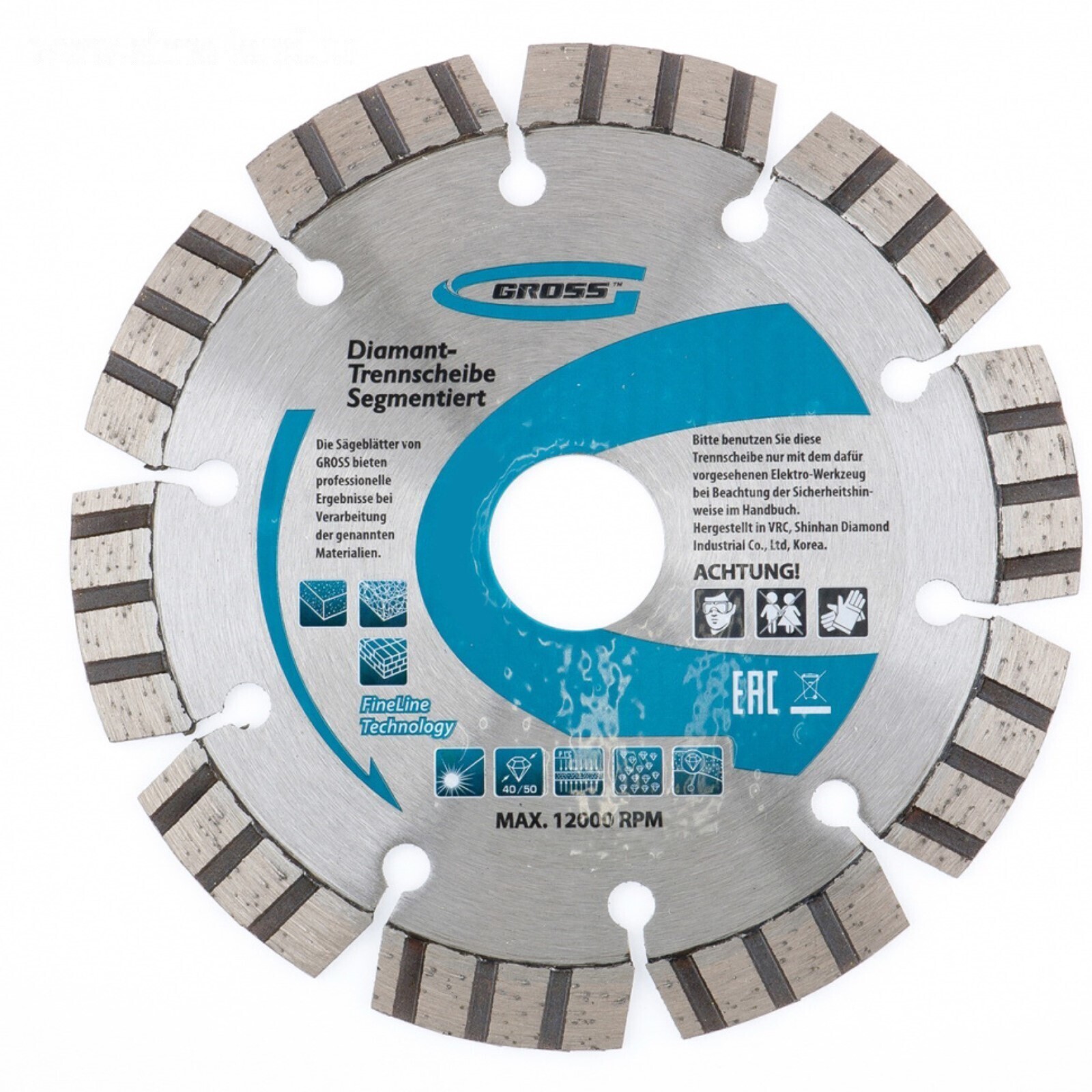 Диск алмазный Gross 730087, лазерная приварка турбо-сегментов, сухой рез, ф230х22,2мм