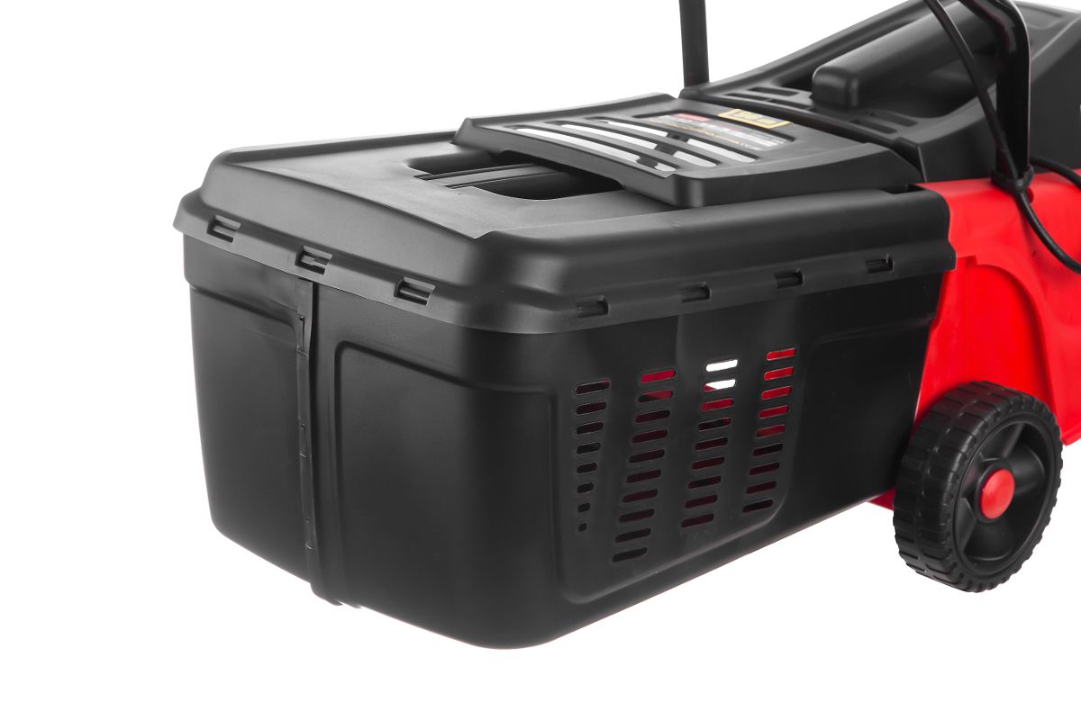 HAMMER ETK 1000 – лёгкая электрическая газонокосилка для дачи. Мощность 1000 Вт. Работает от сети 220 В. Срезает полосу травы в 320 мм за проход.