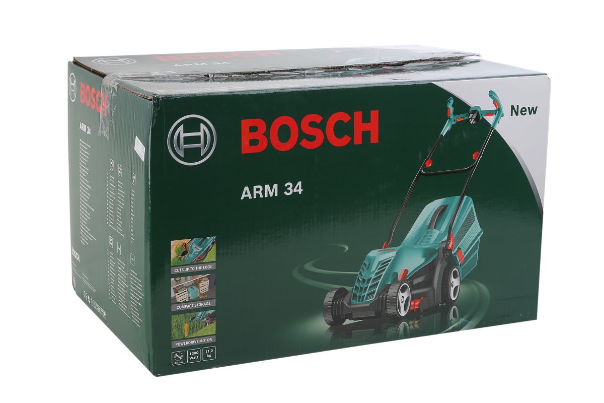 BOSCH ARM 34 — электрическая газонокосилка для работы на больших площадях — до 400 м2. Ширина обработки — 34 см. Мощность двигателя - 1300 Вт. Высоту реза можно регулировать от 20 до 70 мм. Объём травосборника - 40 литров.