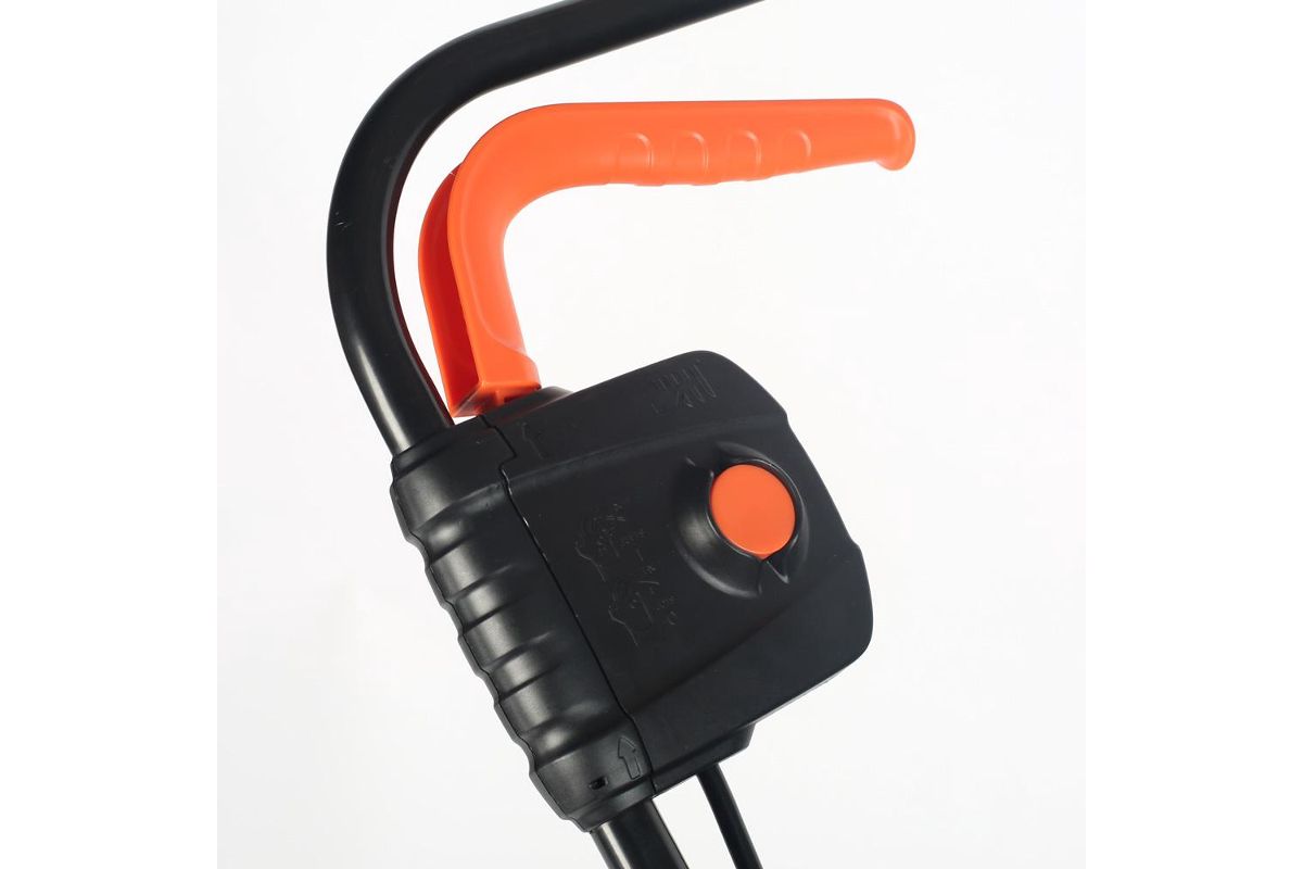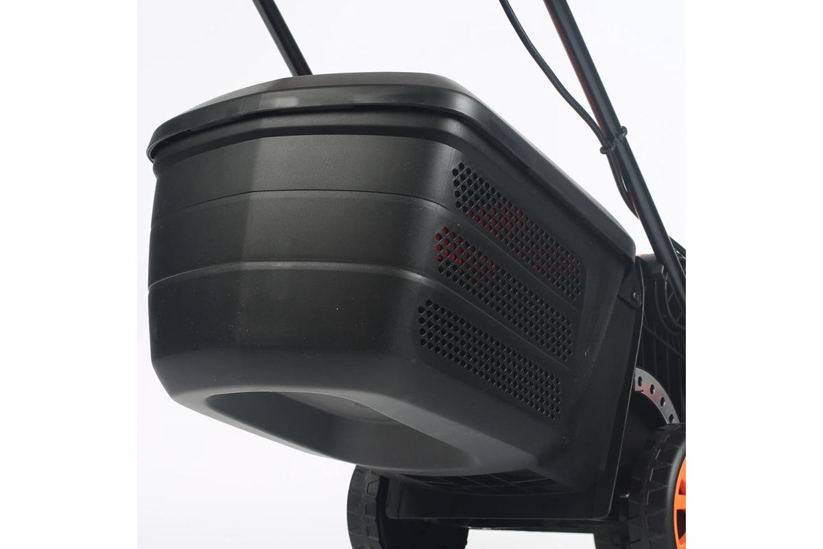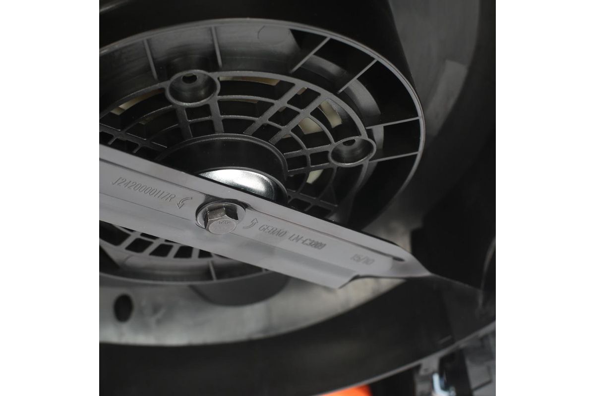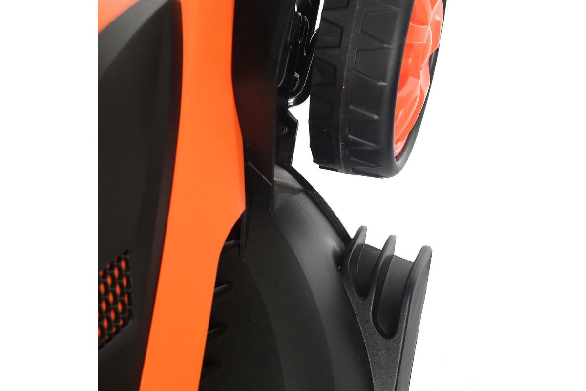 Благодаря медной обмотке мотор не перегревается. Вы сможете подстричь весь газон без лишних перерывов. За один проход газонокосилка срезает полосу травы шириной 340 мм.