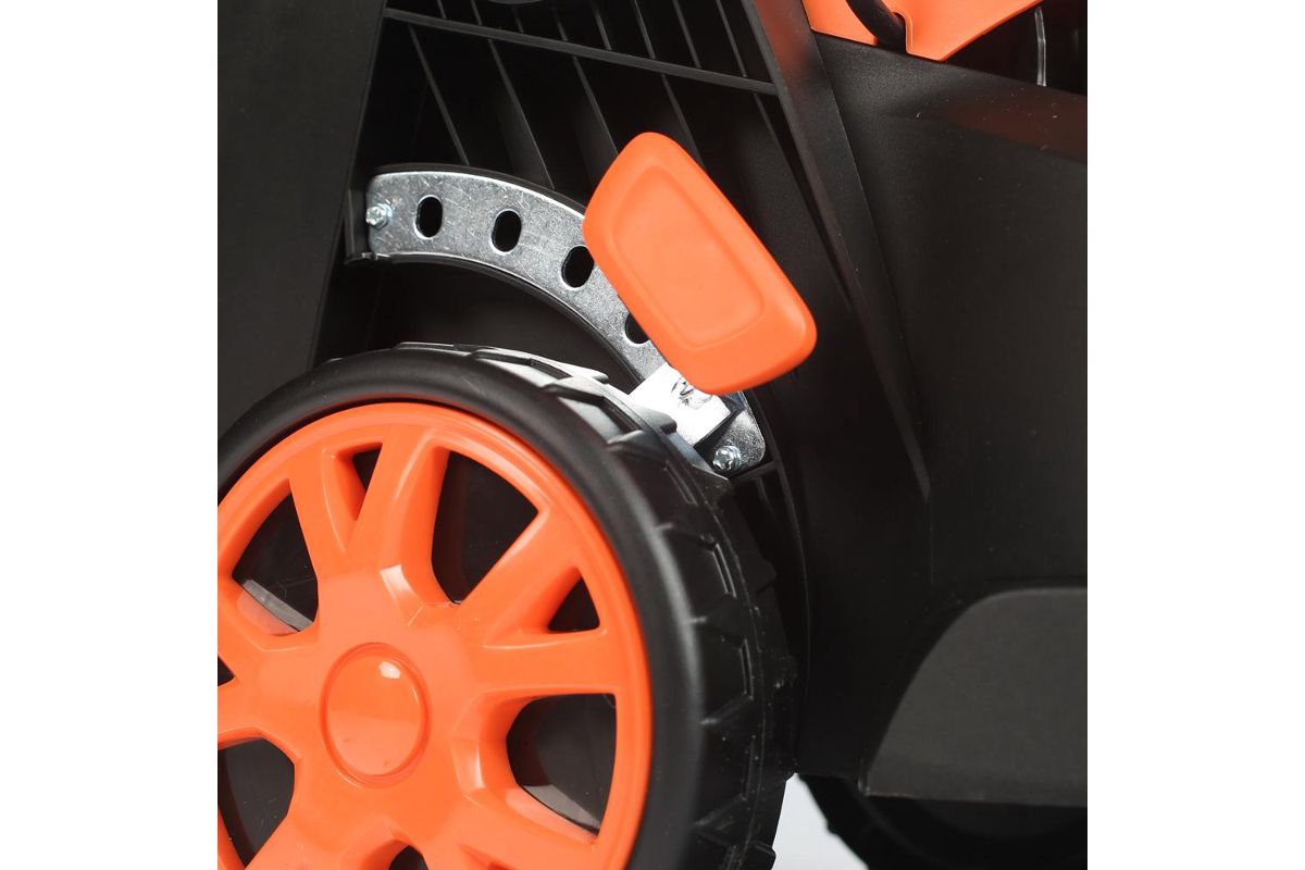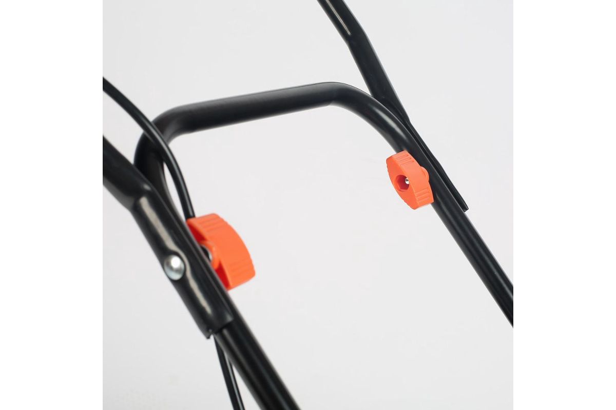 Ручка газонокосилки складывается вровень с корпусом, поэтому для хранения инструмента понадобится совсем немного места.