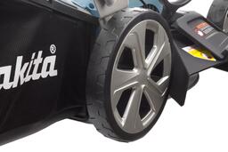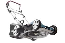 Четыре крупных обрезиненных колеса улучшают манёвренность газонокосилки. Самоходная конструкция облегчает работы в саду.