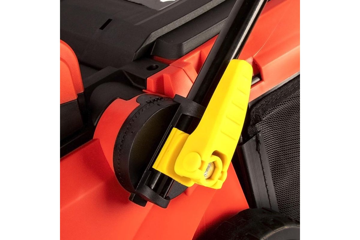 Складная рукоятка позволяет экономить место при хранении газонокосилки.