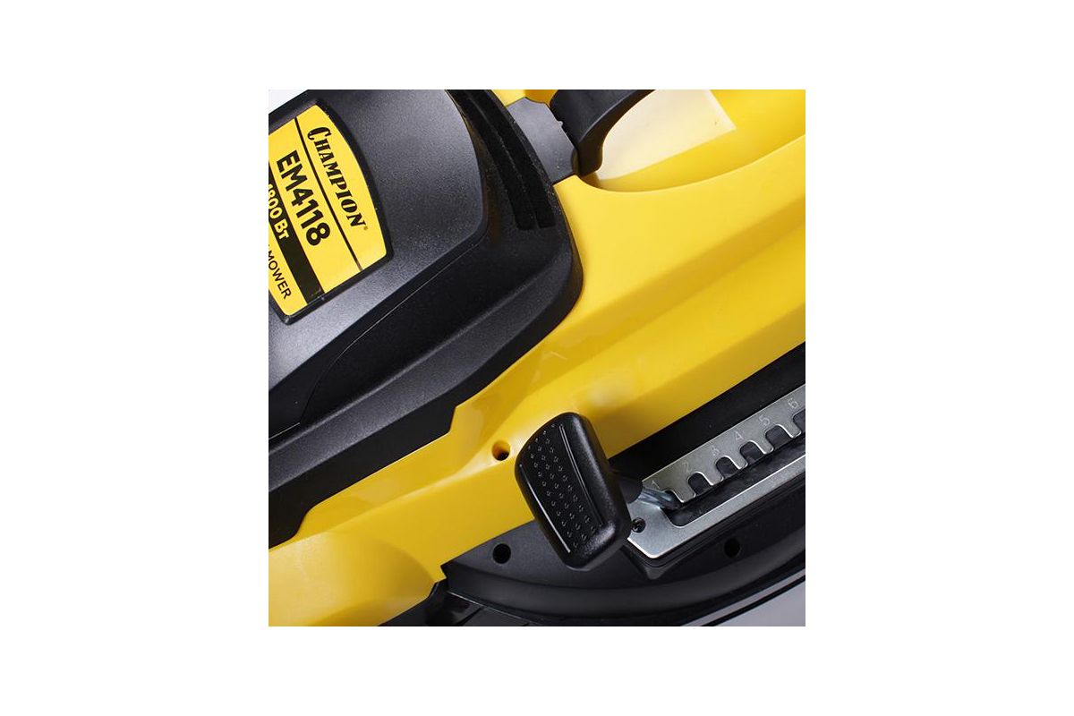 Газонокосилка CHAMPION EM4118 эл-я 1.8кВт пласт.+ткань травосб. 50л ширина 420мм 25-75мм, 13кг