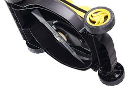 Четыре крупных обрезиненных колеса улучшают манёвренность газонокосилки. Самоходная конструкция облегчает работы в саду.