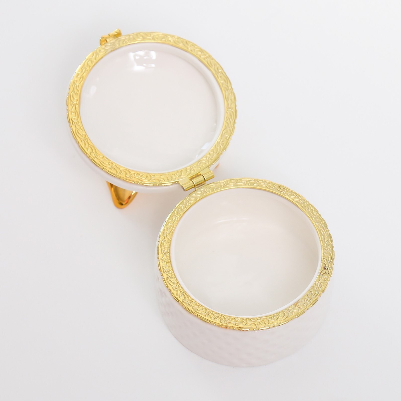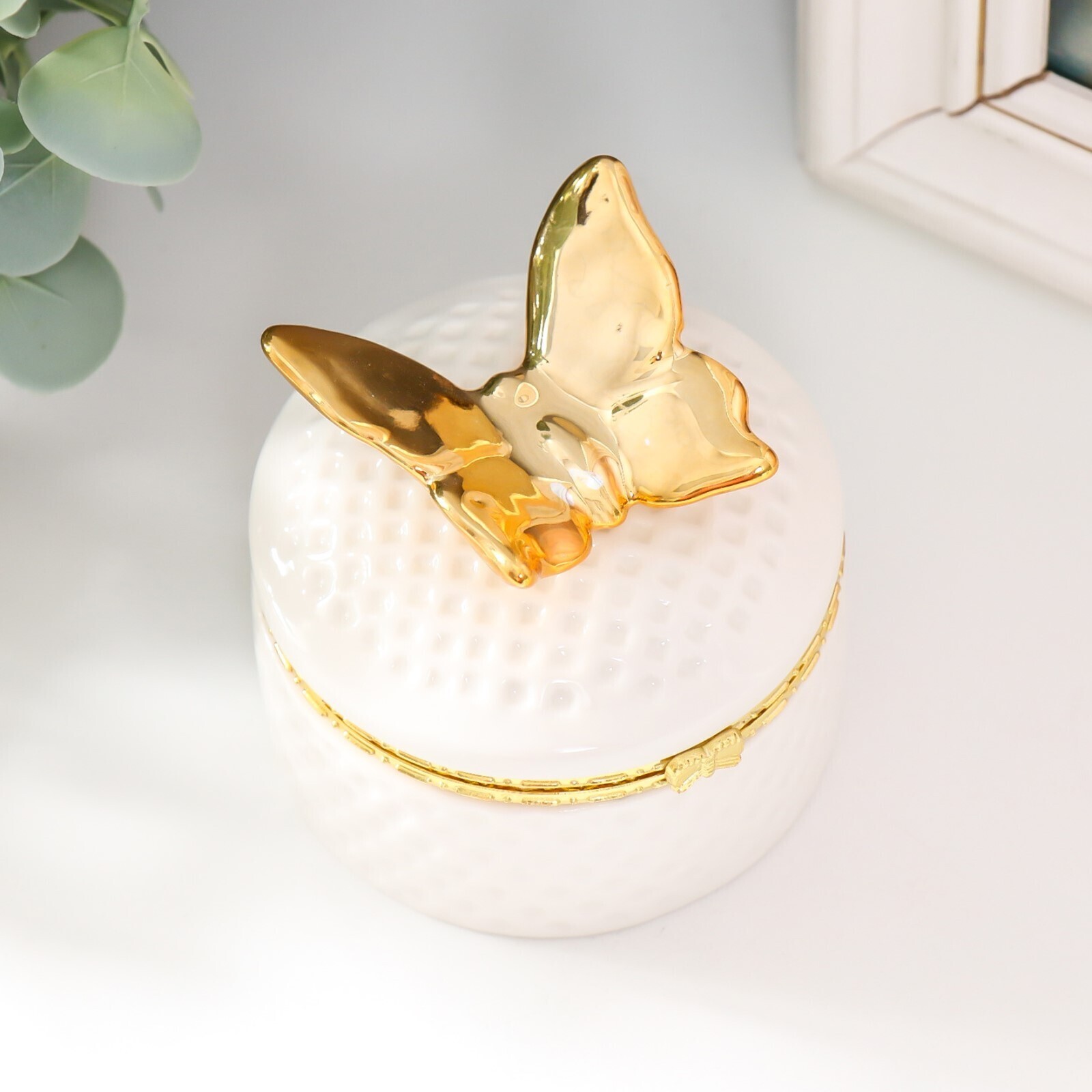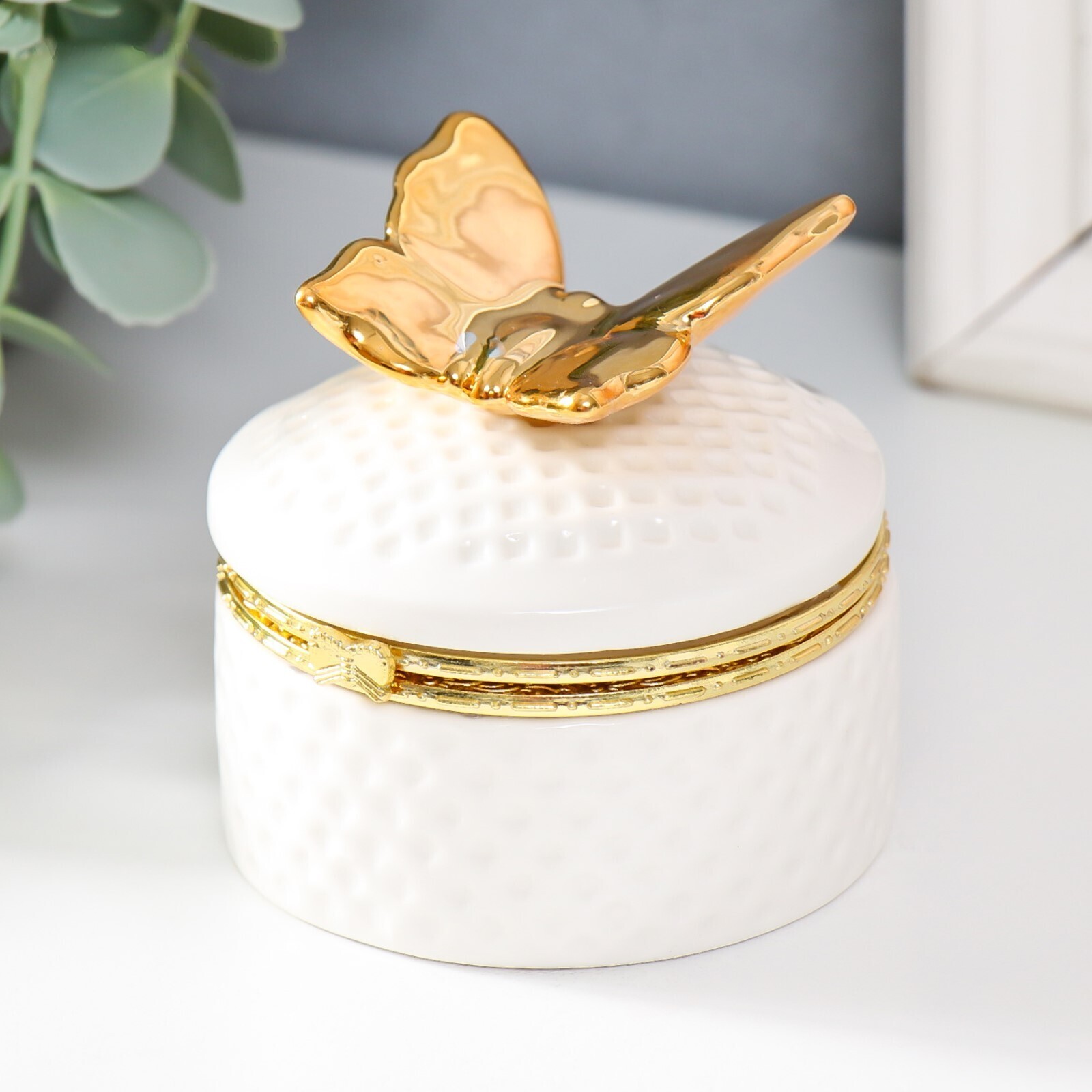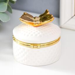 Шкатулка керамика "Золотая бабочка. Плетёнка" белая 7х7х7 см
