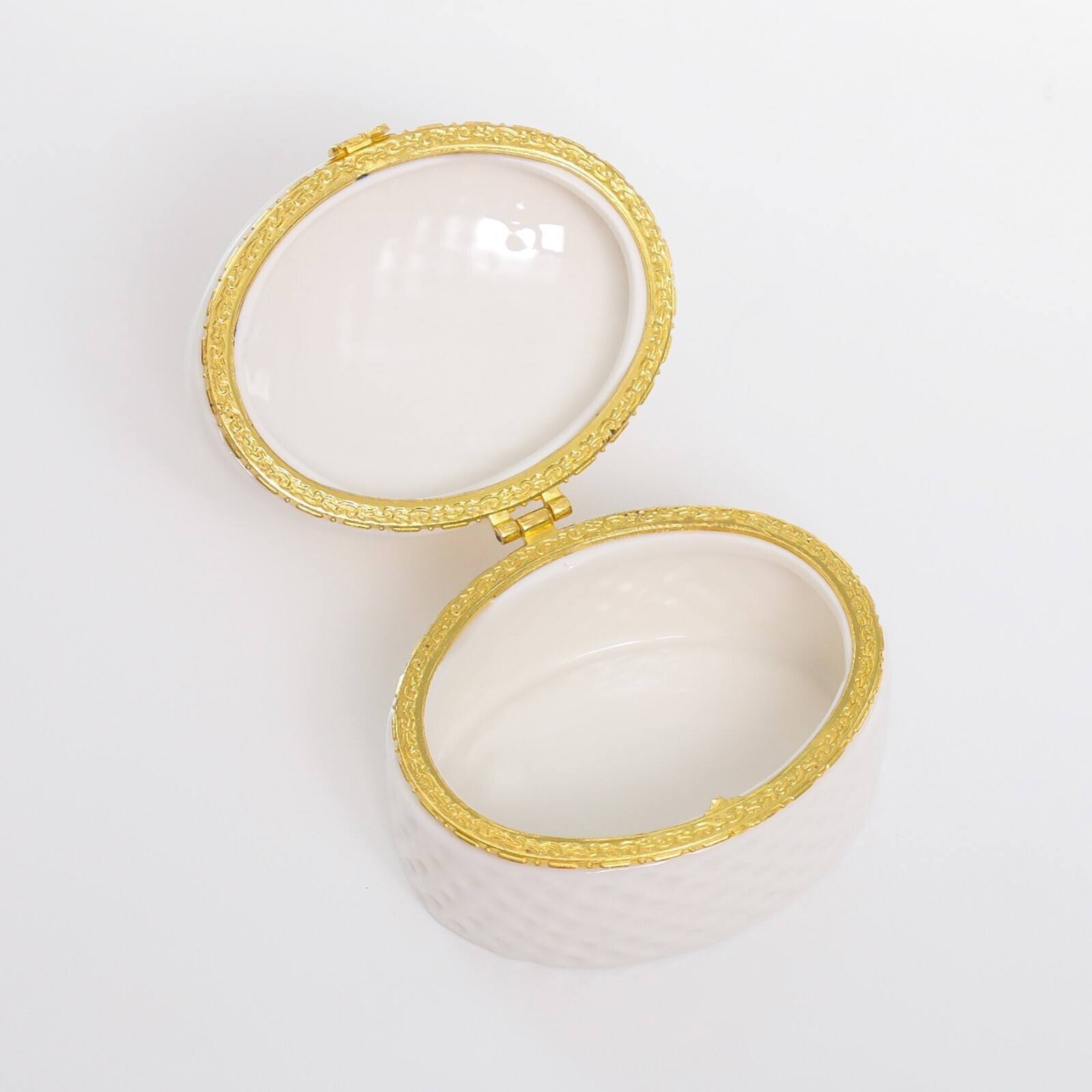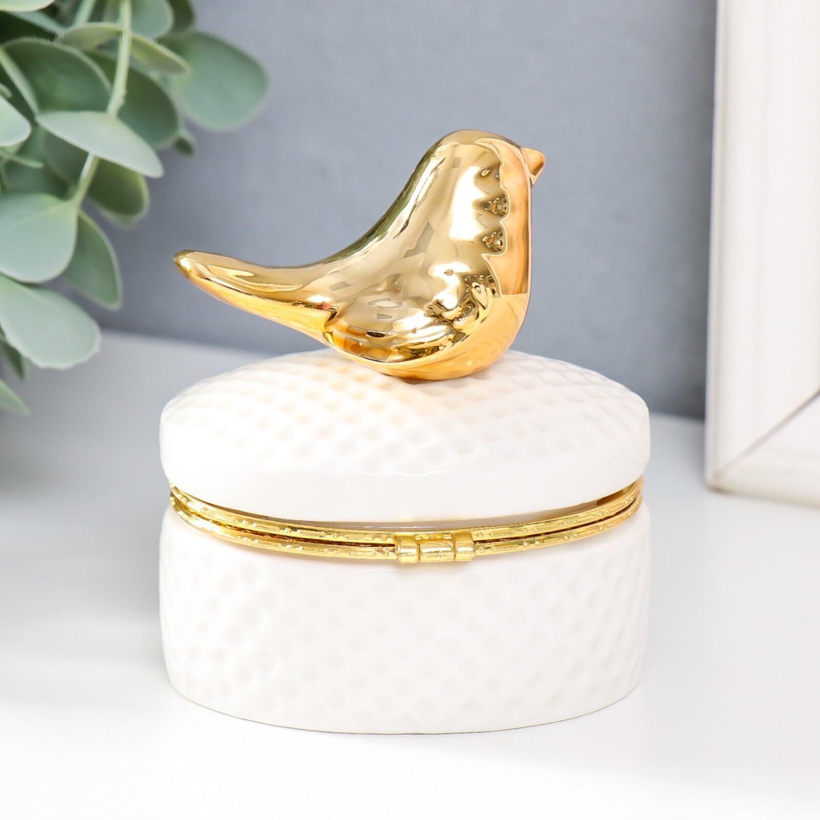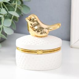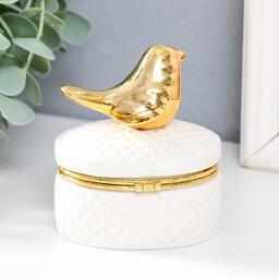 Шкатулка керамика "Золотая птичка. Плетёнка" белая 7,5х5,6х9 см