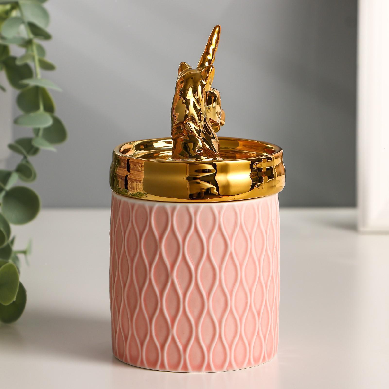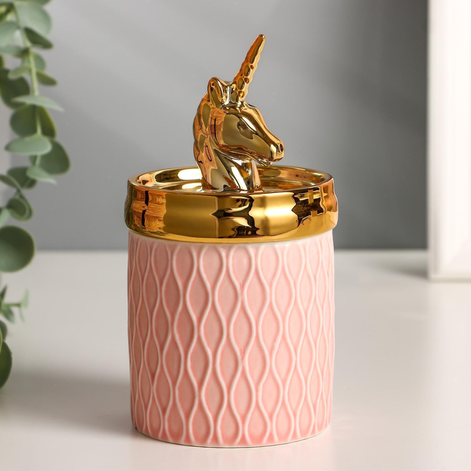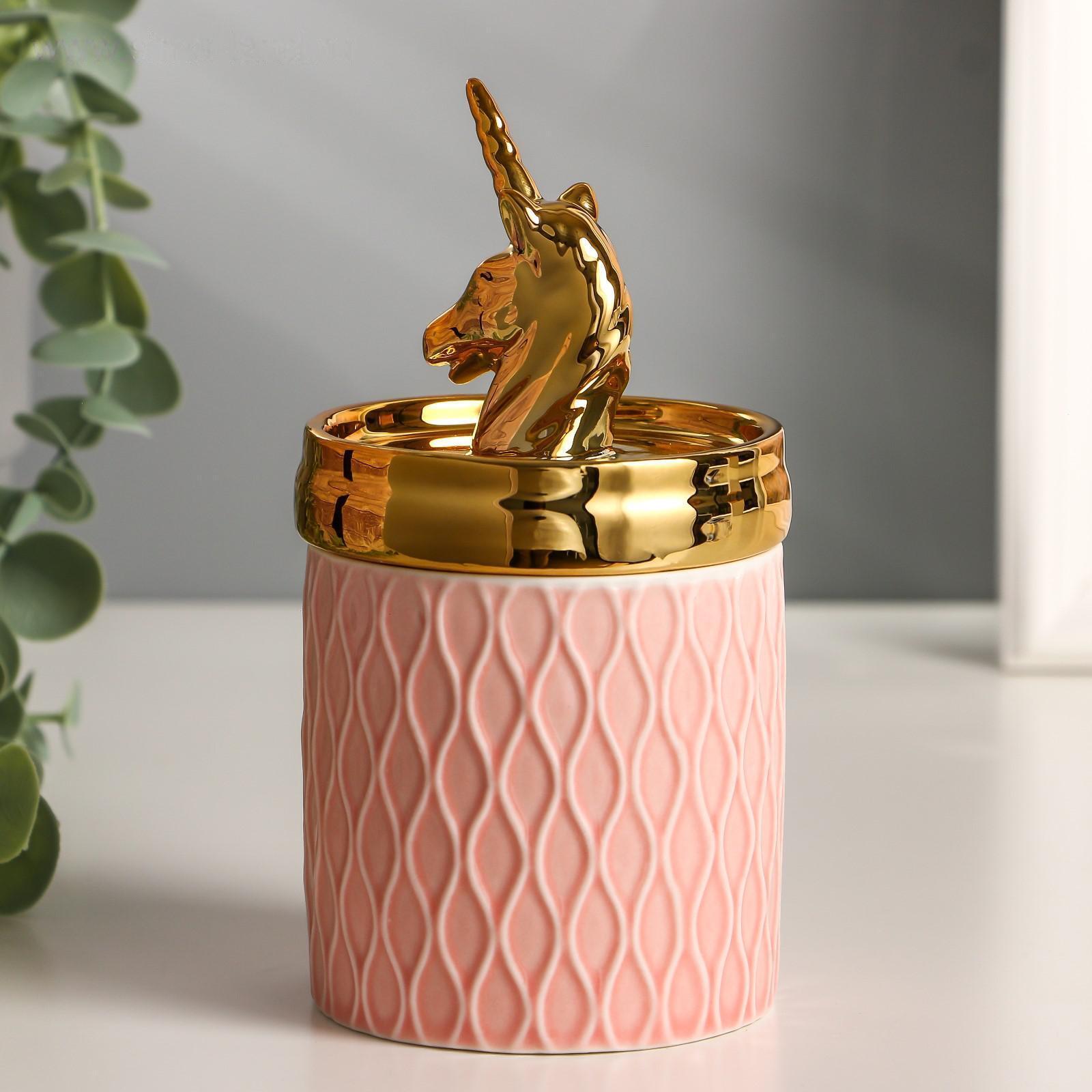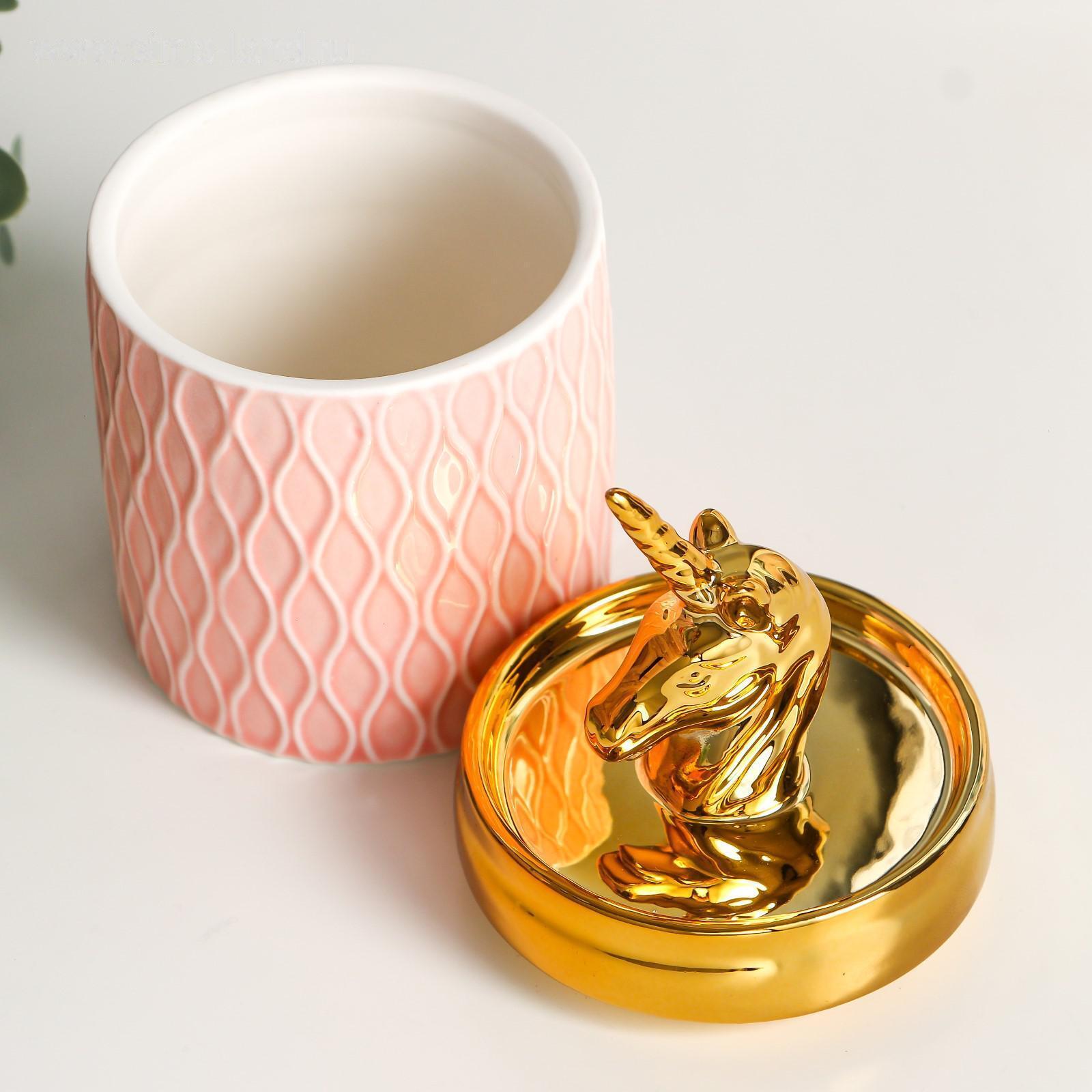 Шкатулка керамика "Золотой единорожек" 14,5х7,5х7,5 см
