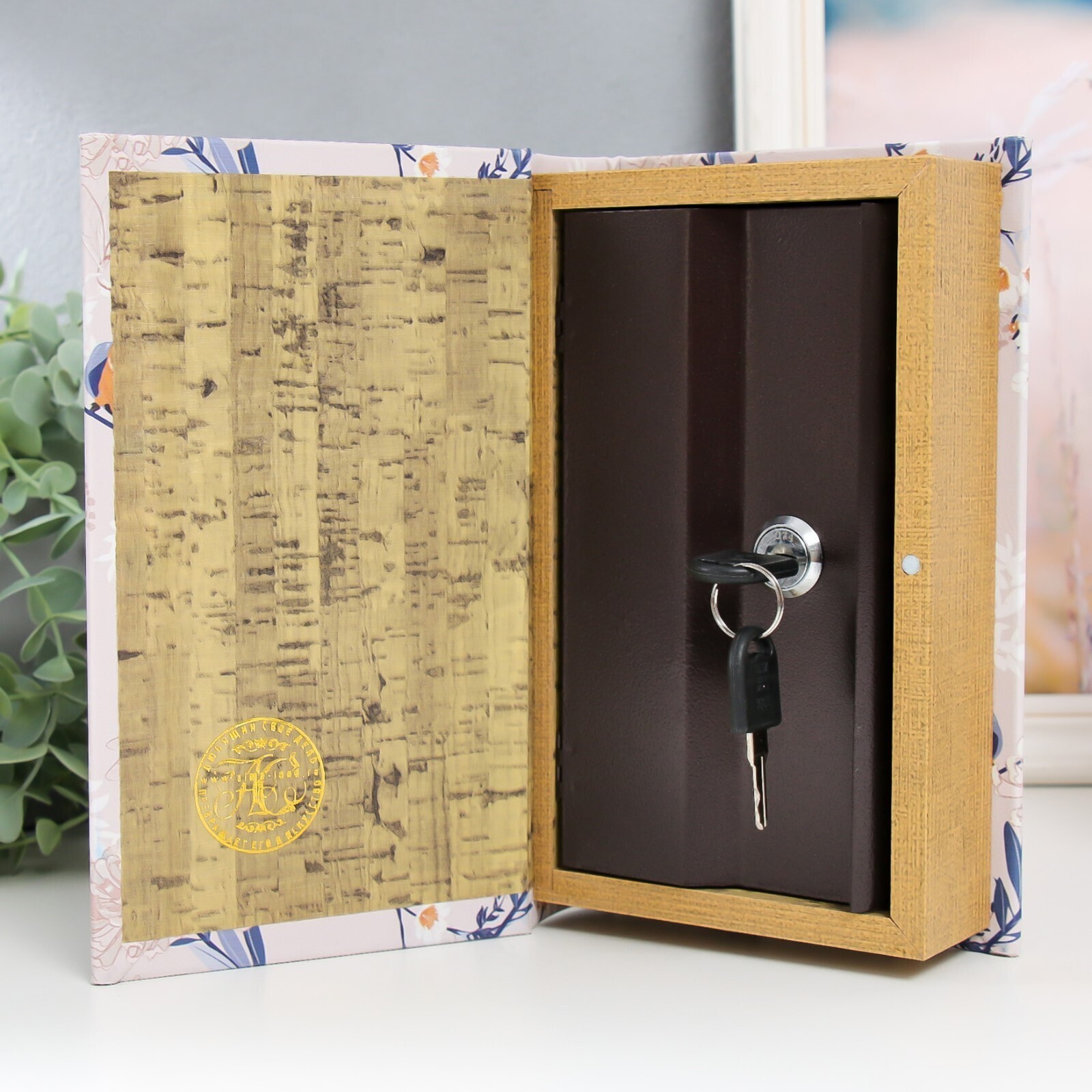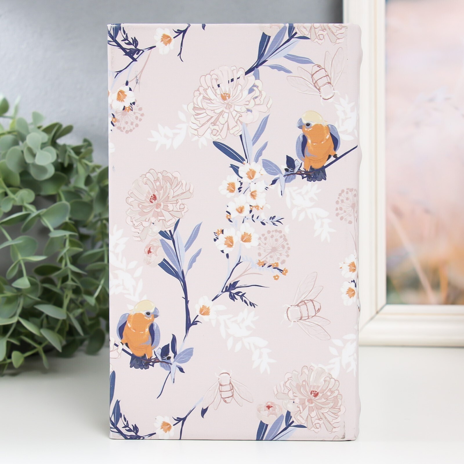 Сейф-книга дерево кожзам "Белые цветы и жёлтые птицы" 21х13х5 см