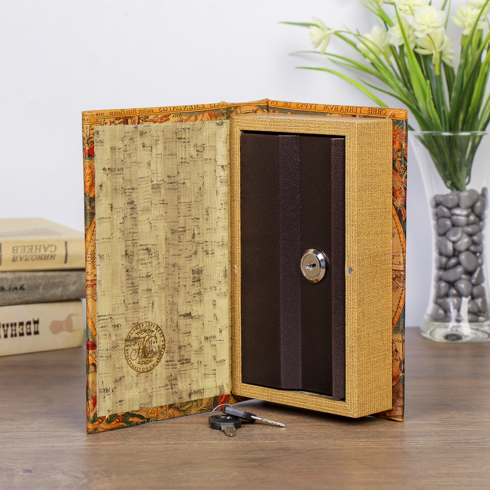 Сейф-книга дерево кожа "Старинные карты мира" 21х13х5 см