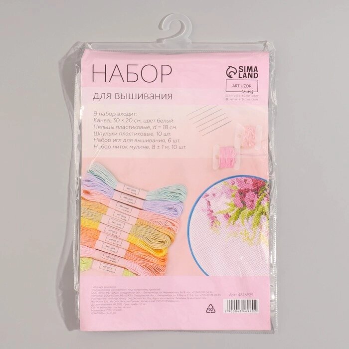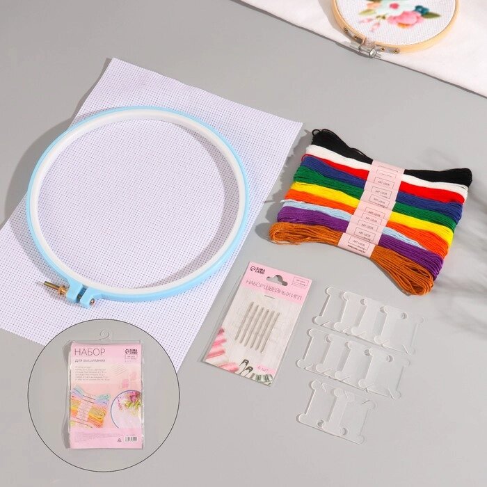 Набор для вышивания крестиком: канва без рисунка 3020 см, нитки 10 шт, пяльцы d = 18 см, иглы 6 шт, шпульки 10 шт