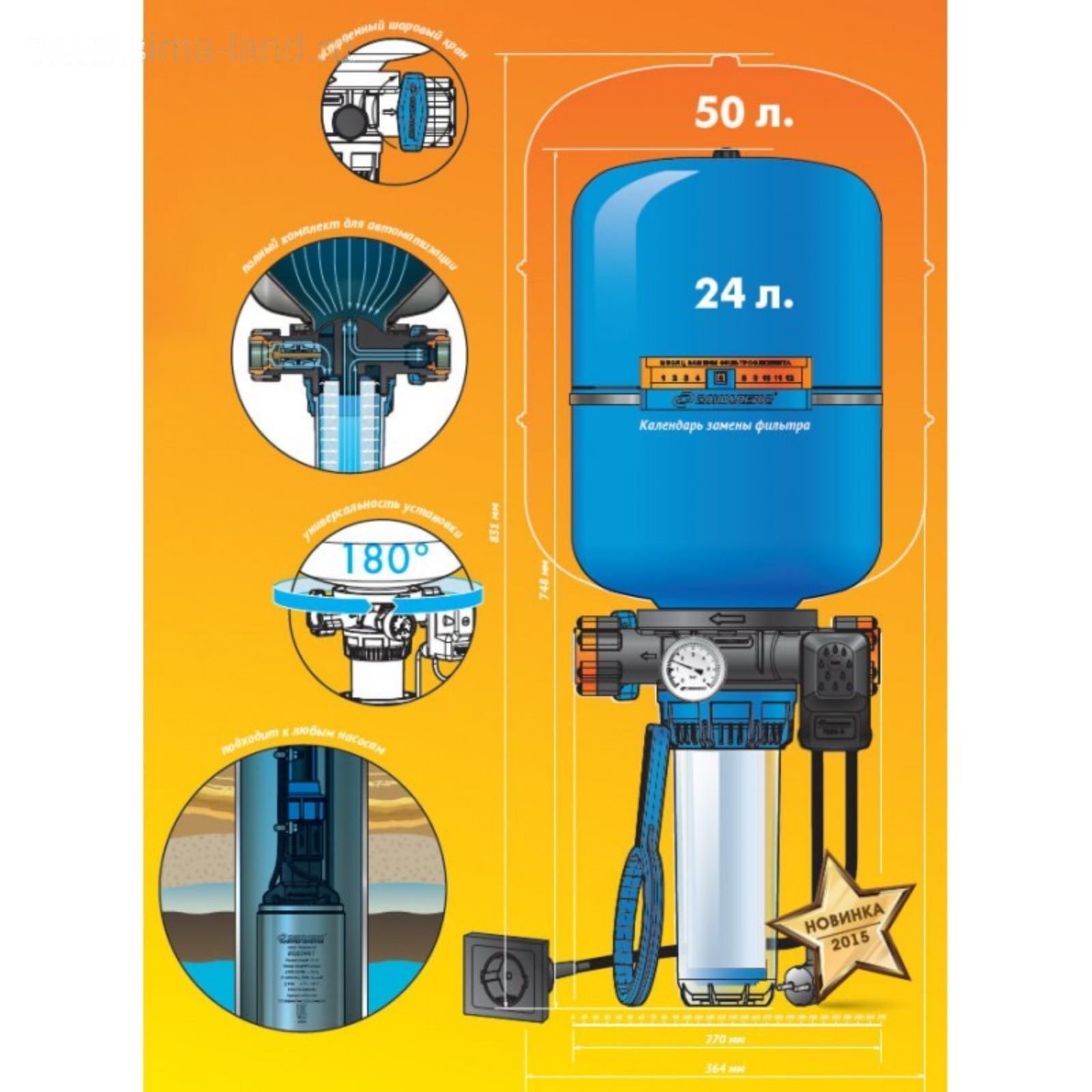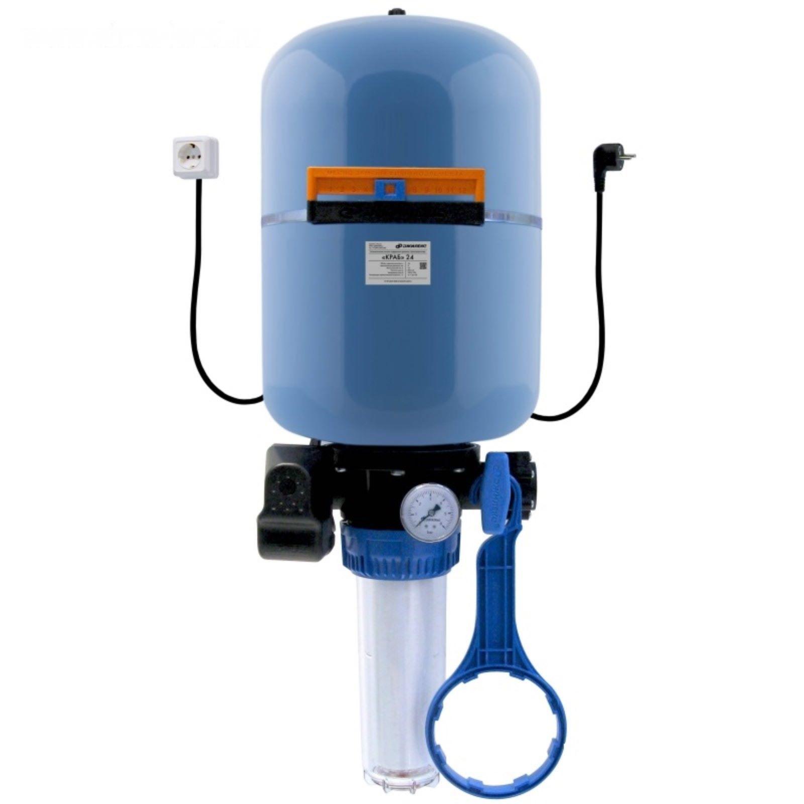 Планируете провести на даче водопровод, но не знаете с чего начать? Комплект автоматизации на баке Джилекс КРАБ 24 поможет правильно организовать монтаж системы, а также сэкономит ваше время и силы. Агрегат включает в себя все необходимые элементы и настройки для автономного водоснабжения загородного дома или участка, а также поддержания заданного давления.