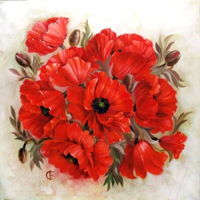 Набор алмазной вышивки Wizardi Алые маки / WD2470