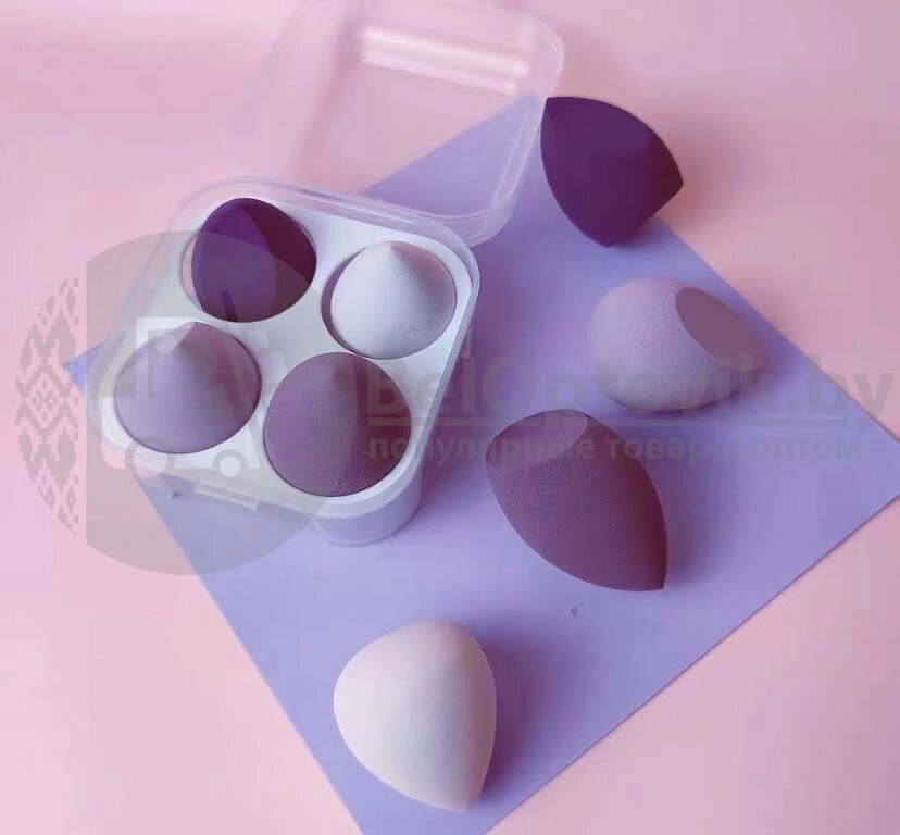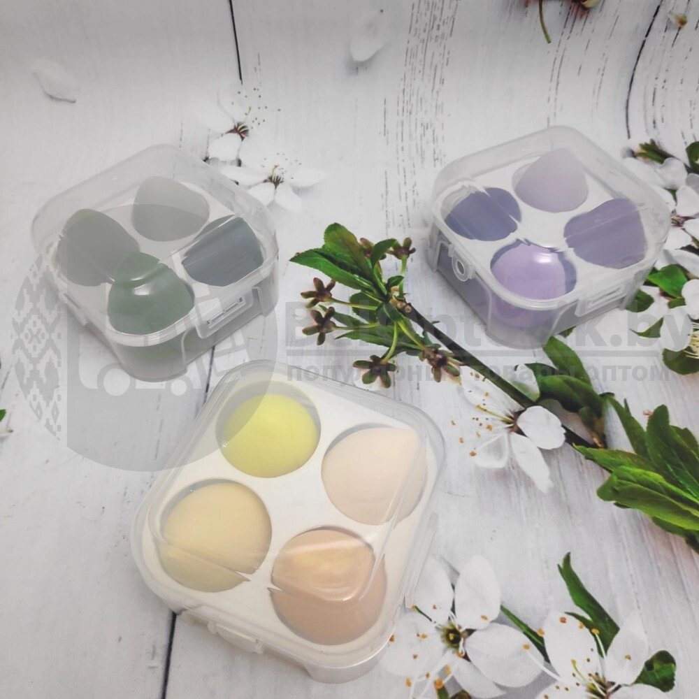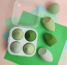 Набор спонжей для макияжа (4 штуки в пластиковом боксе) Зеленые оттенки