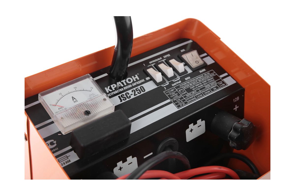 КРАТОН JSC-250 — пуско-зарядное устройство, предназначено для аккумуляторов емкостью 100-600 Ач, а также батарей с напряжением 12/24 Вольт. Используется в автомобильных сервисах, гаражах, на стоянках. Максимальный выходной ток пуска — 40А, заряда — 25А.