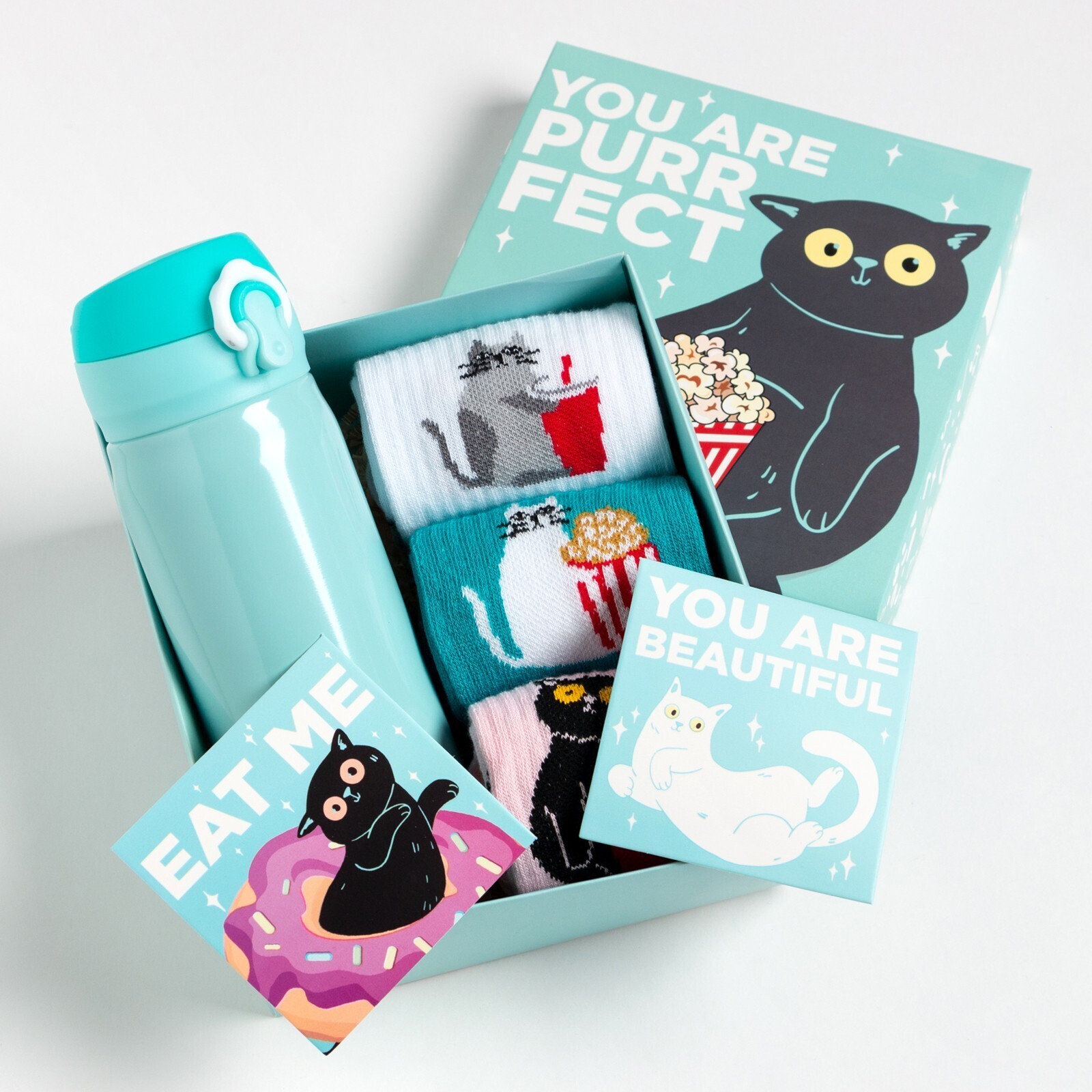 Подарочный набор термос и носки 3 пары KAFTAN Cat, р. 33-35 (20-22 см)