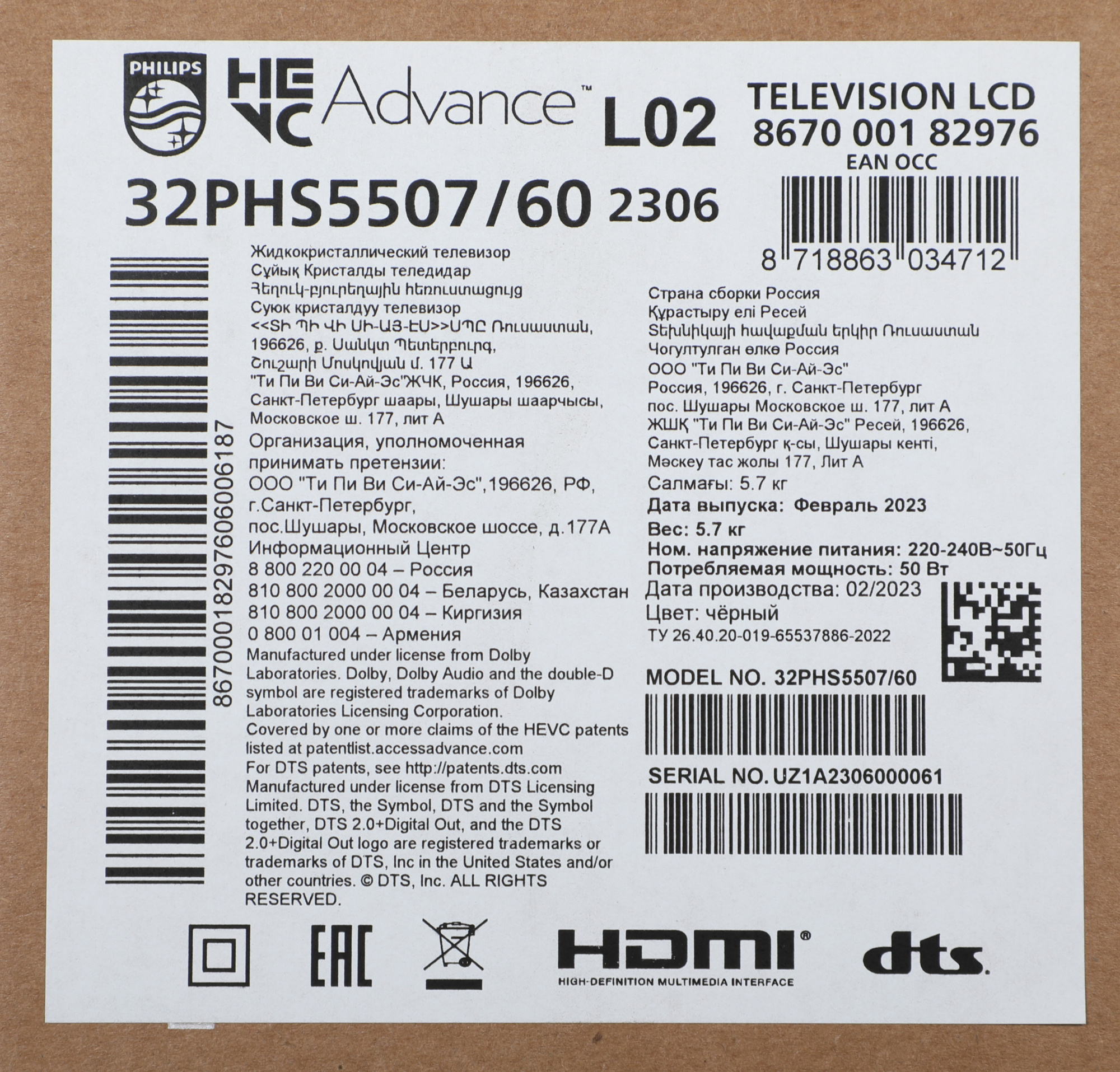 • Энергопотребление в режиме ожидания 0.5 Вт