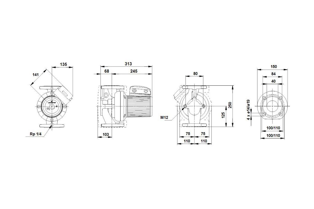 Технические характеристики циркуляционного насоса GRUNDFOS UPS 40-120 F: