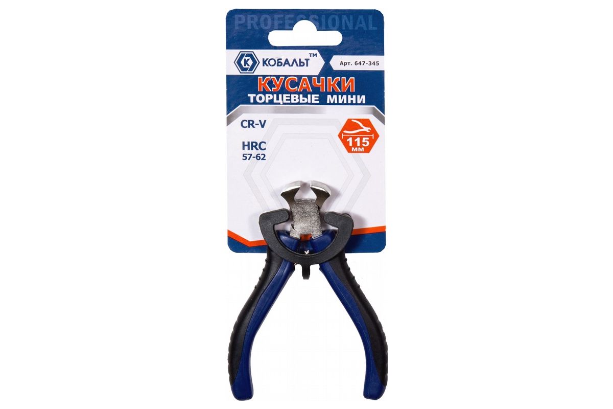 Кусачки КОБАЛЬТ 647-345 торцевые мини 115мм, CR-V 1шт подвес Кусачки торцевые КОБАЛЬТ мини 115 мм, CR-V (1 шт.) подвес