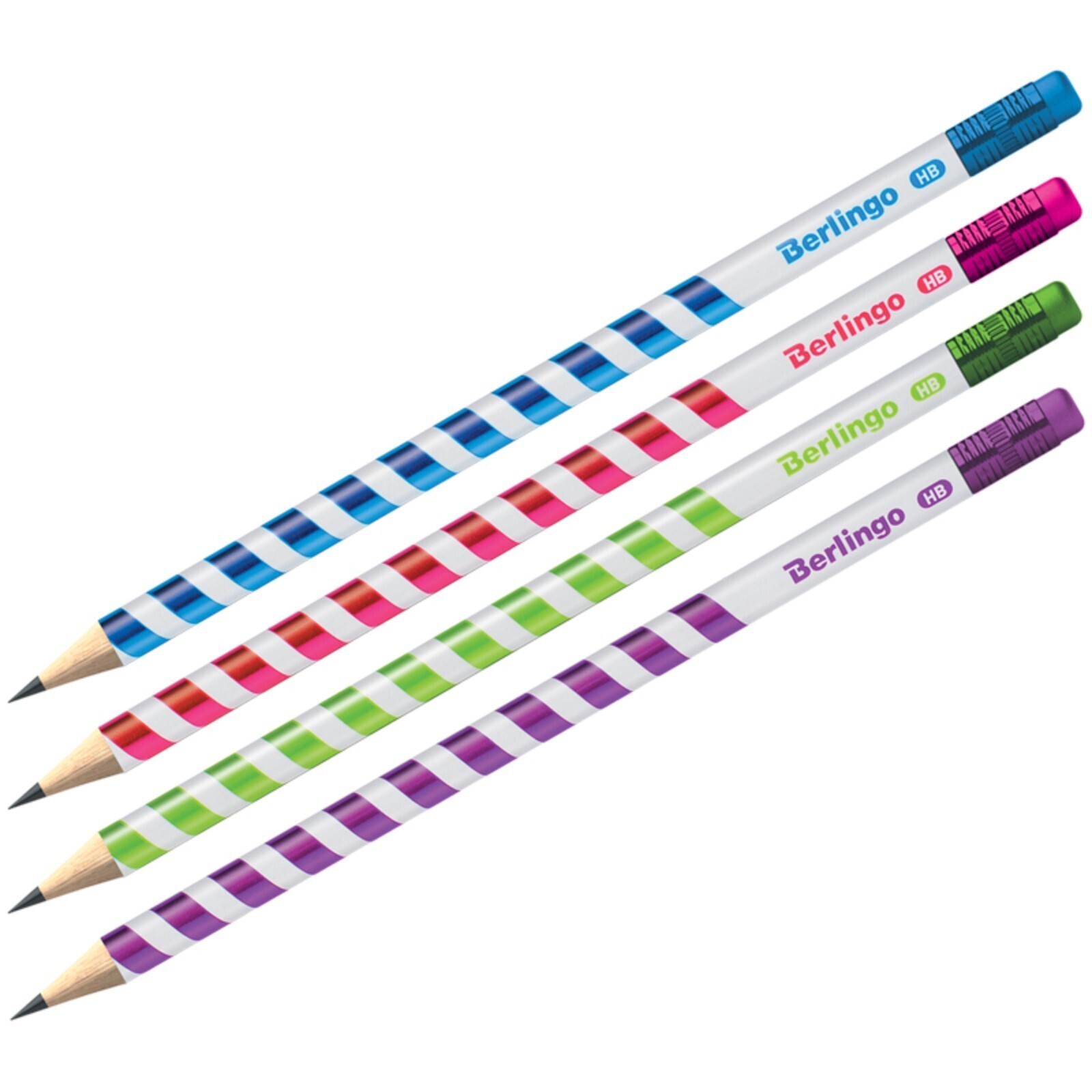 Карандаш ч/г Berlingo "Supertwist" HB, круглый, заточен, с ластиком, ассорти