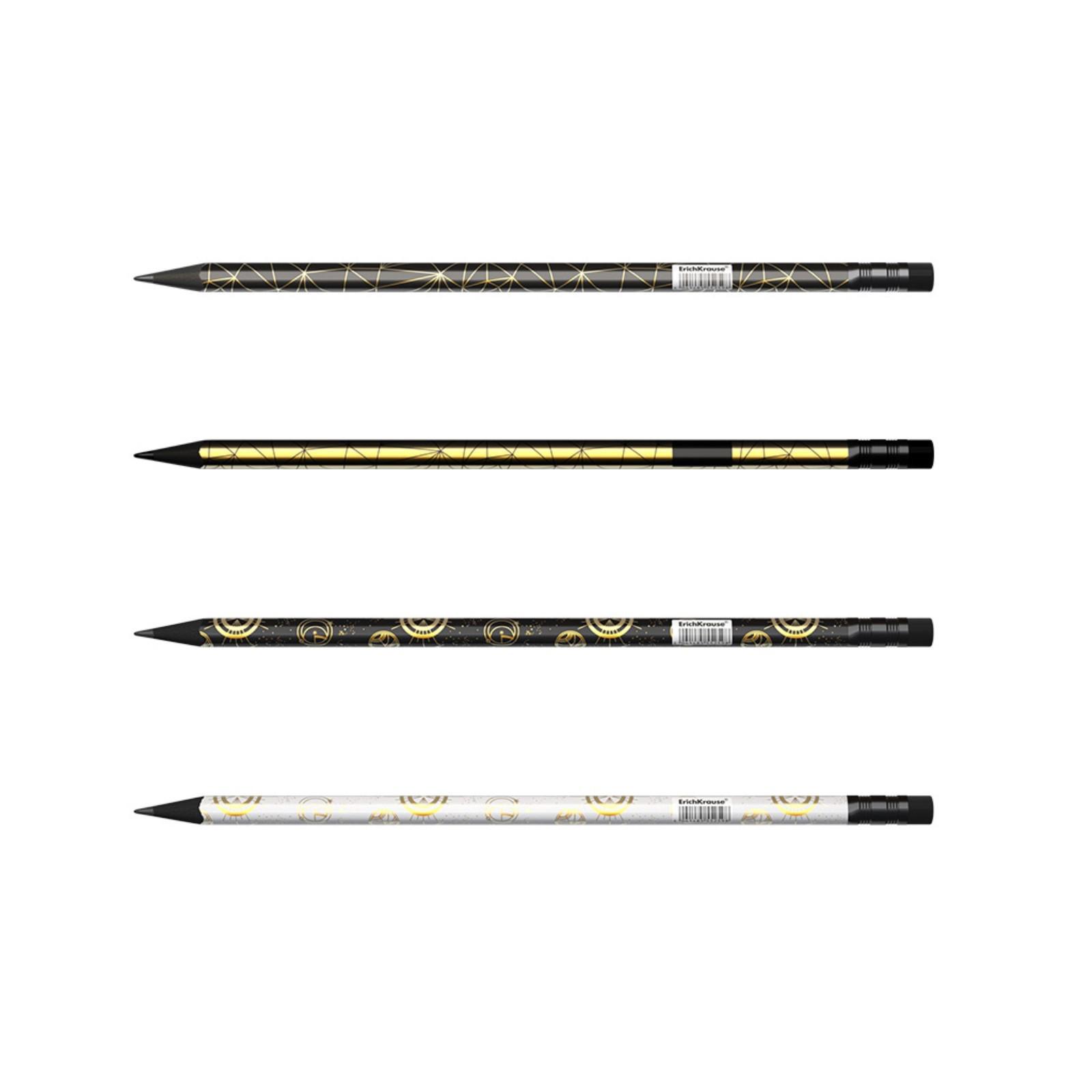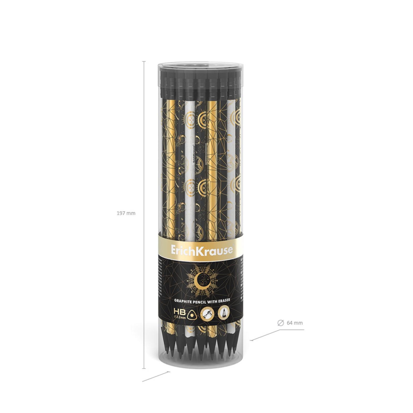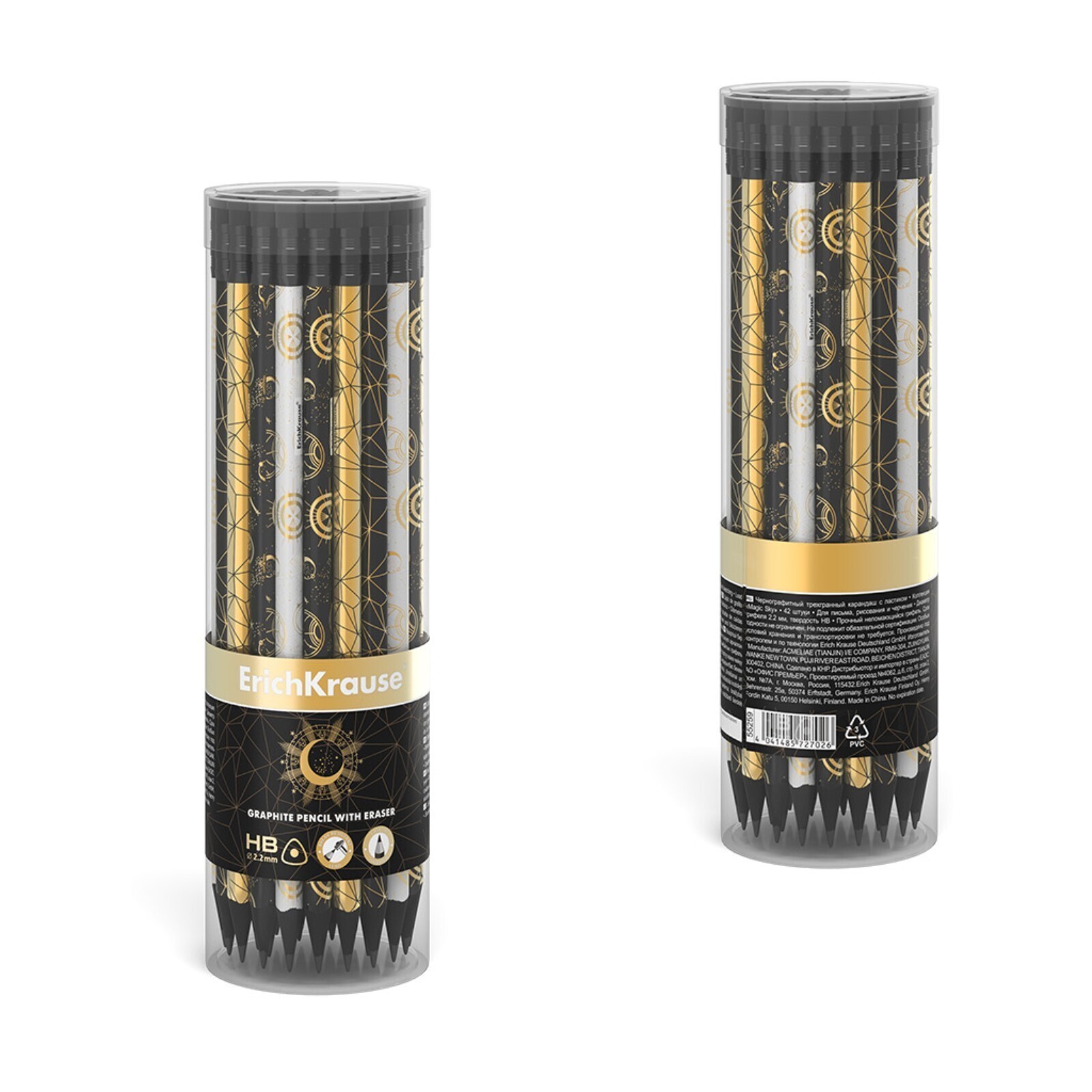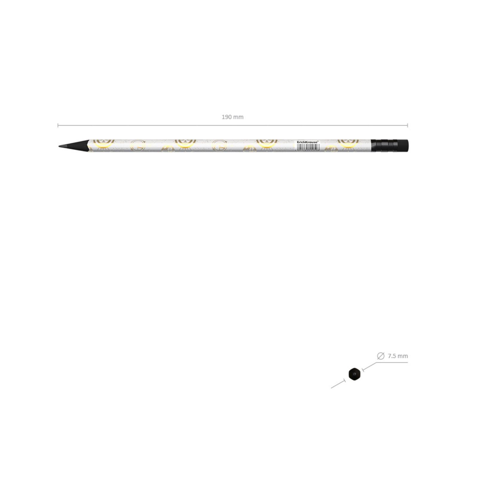 Карандаш чернографитный с ластиком ErichKrause Magic Sky (простой), HB, грифель d 2.2 мм, трeхгранный, с принтом, из люкс древесины, микс