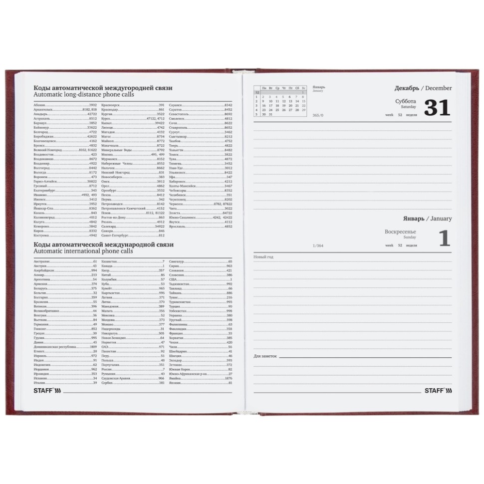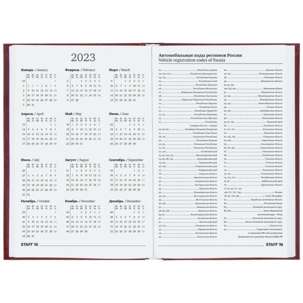 Нарушена упаковка! <370462> Ежедневник датированный на 2023 (145х215 мм), А5, STAFF, обложка бумвинил, бордовый, 114188