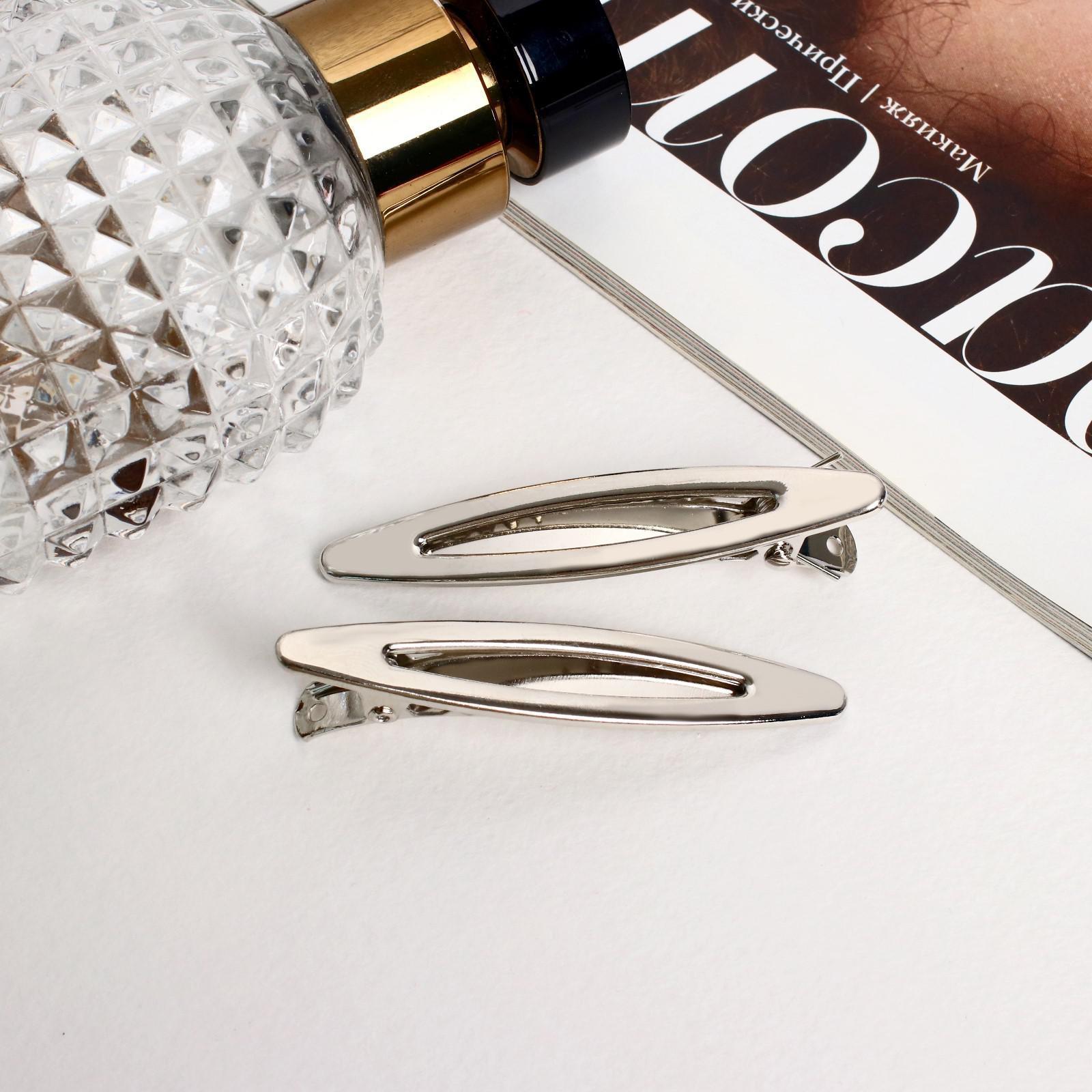 Зажим для волос "Кимберли" (набор 2 шт) 6 см, серебро