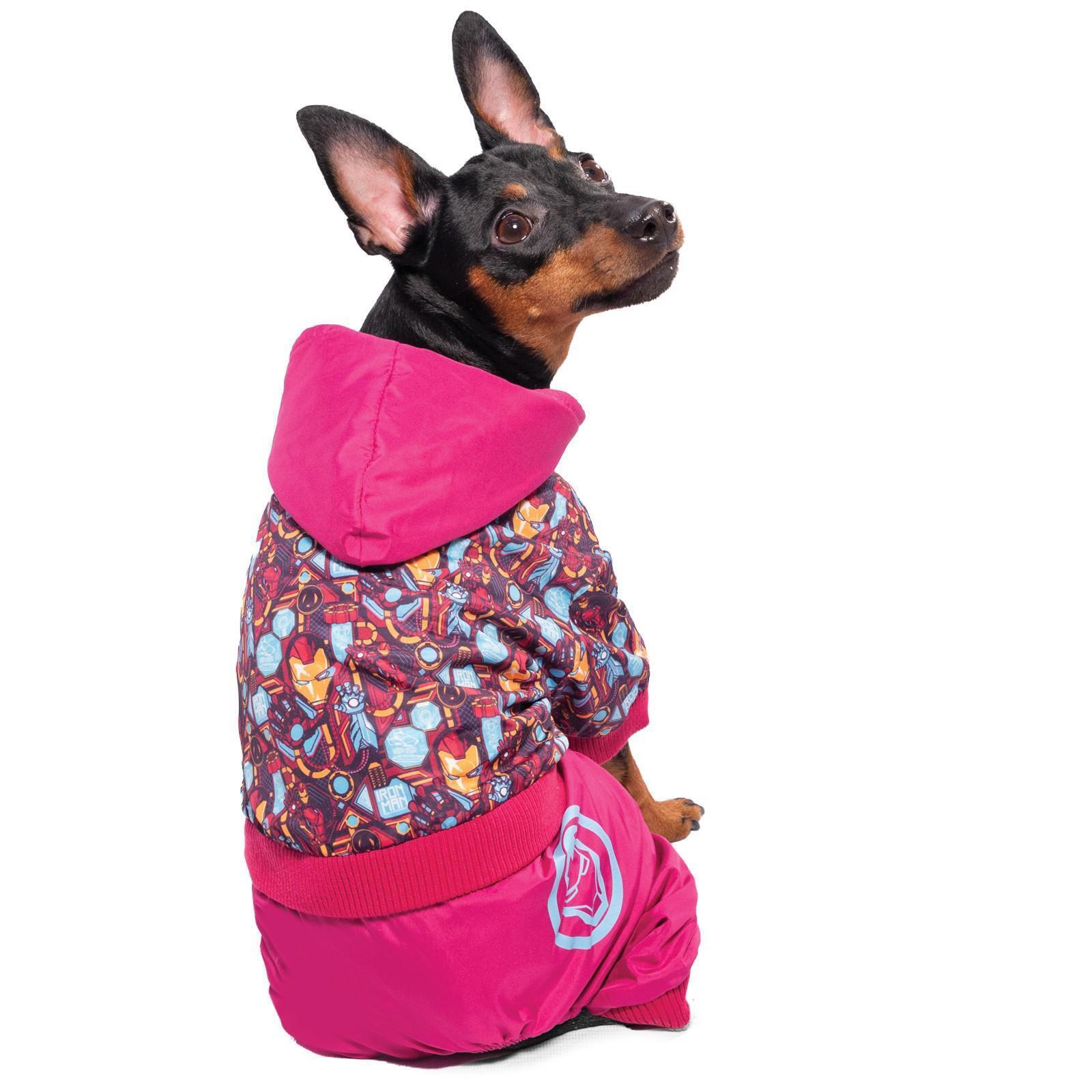 Дождевик в дизайне "Железный человек" выполнен из дышащего материала, который обеспечивает сухость собаки во время прогулок под дождем.