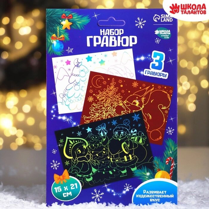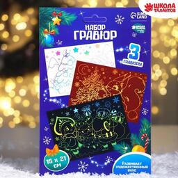 Гравюра "Новогодняя елка" , А5, набор 3 шт