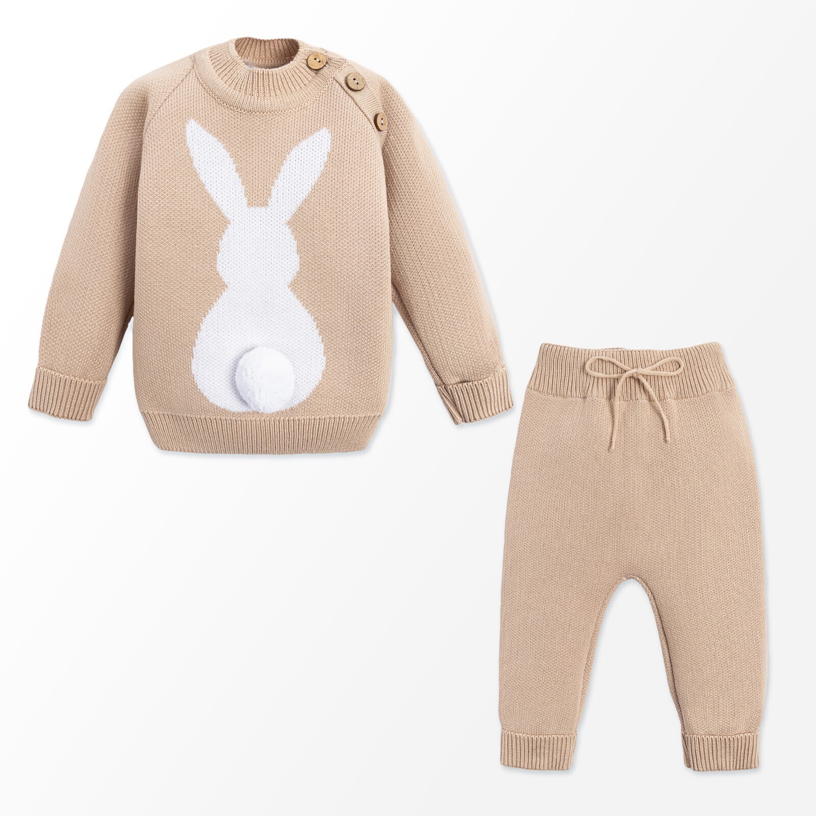 Комплект вязаный Крошка Я «Заяц» рост 68-74 см, цвет бежевый