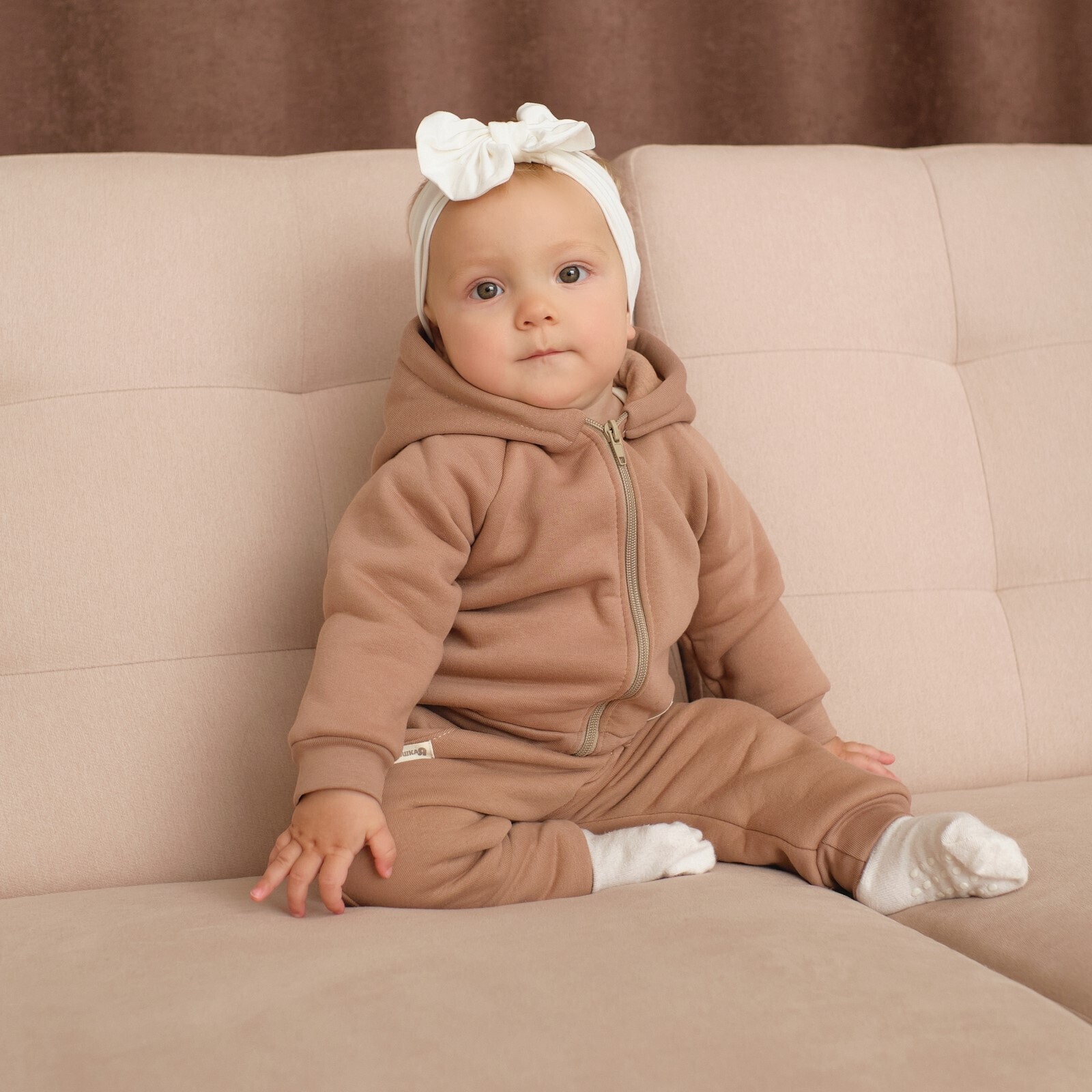 Костюм: толстовка и брюки Крошка Я, BASIC LINE, рост 62-68 см, цвет коричневый
