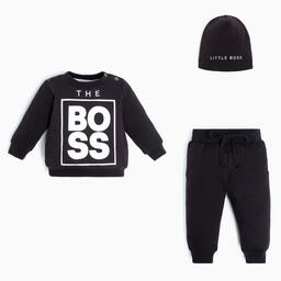 Комплект детский (джемпер, брюки, шапочка) Крошка Я "Little Boss", рост 62-68 см, цвет чёрный