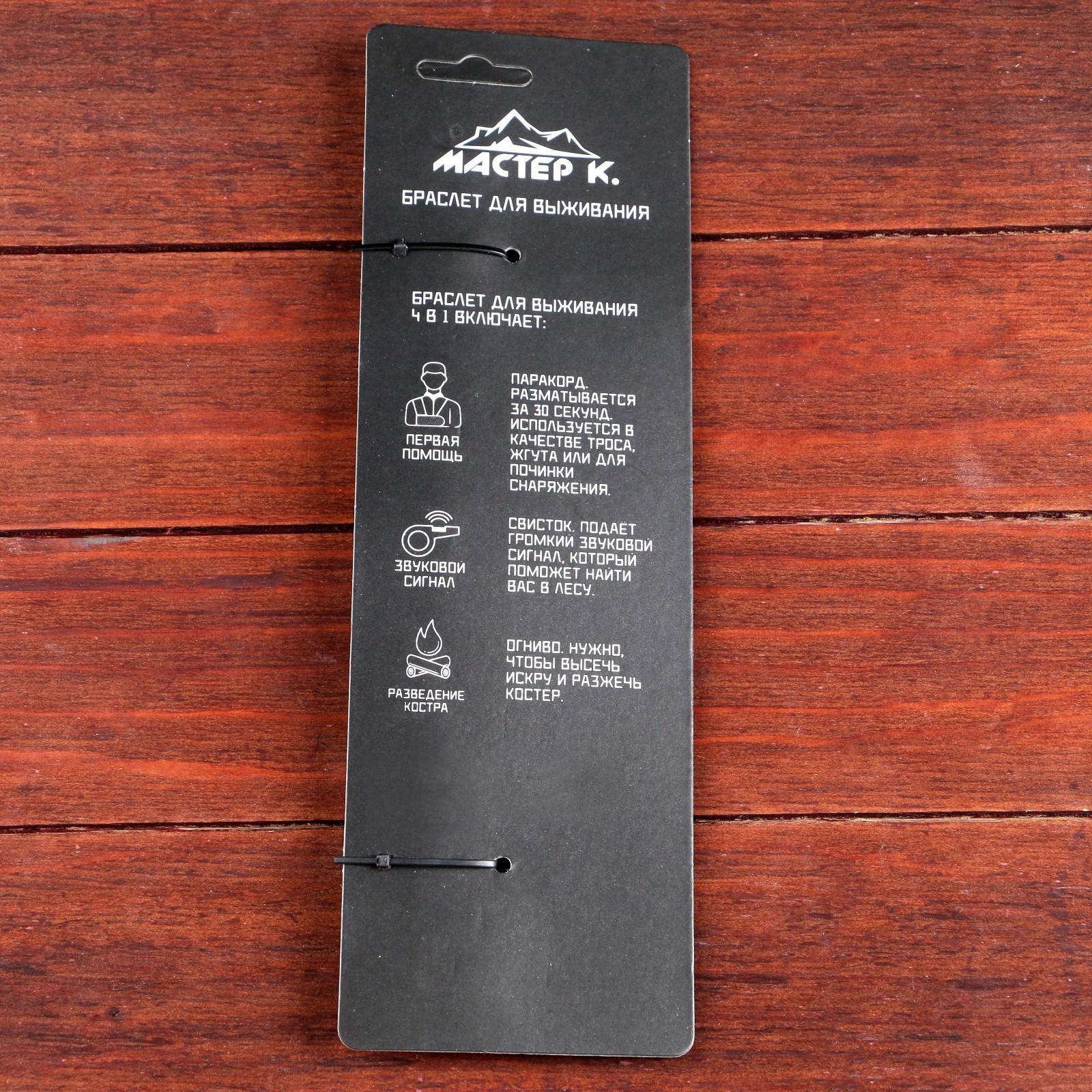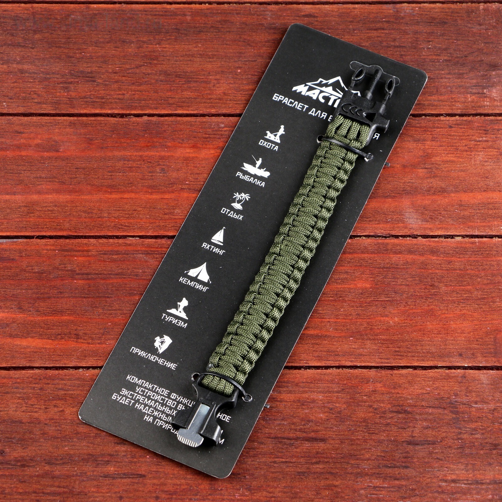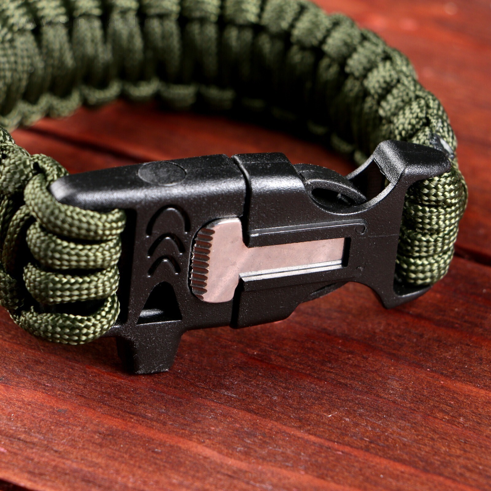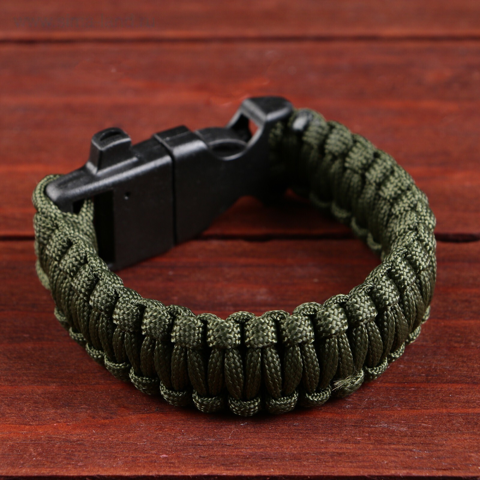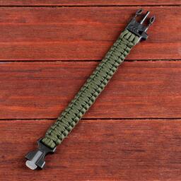 Браслет для выживания 3в1 (паракорд 2 м, свисток, огниво), тёмно-зелёный, 25.5 × 2.5 см, 2 м