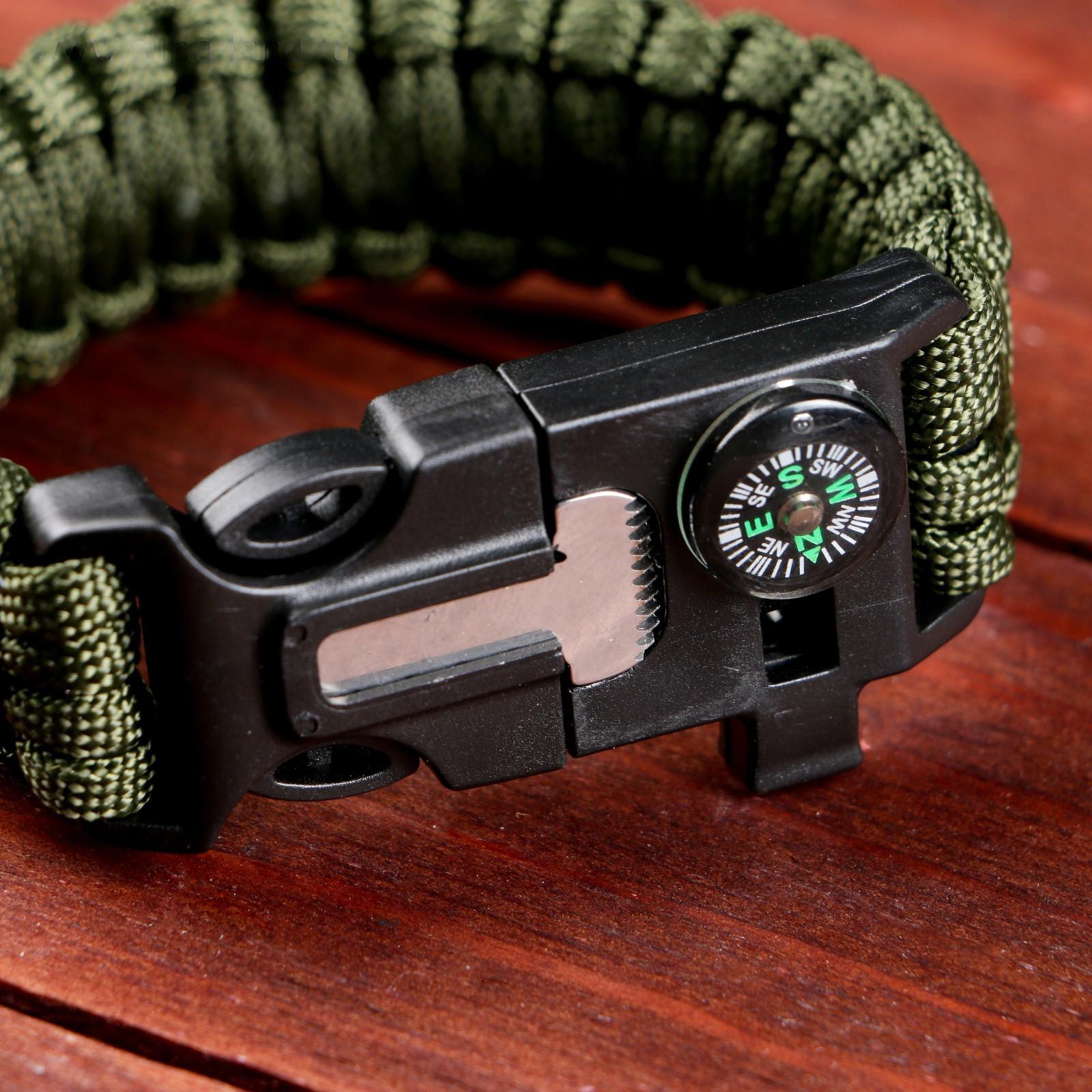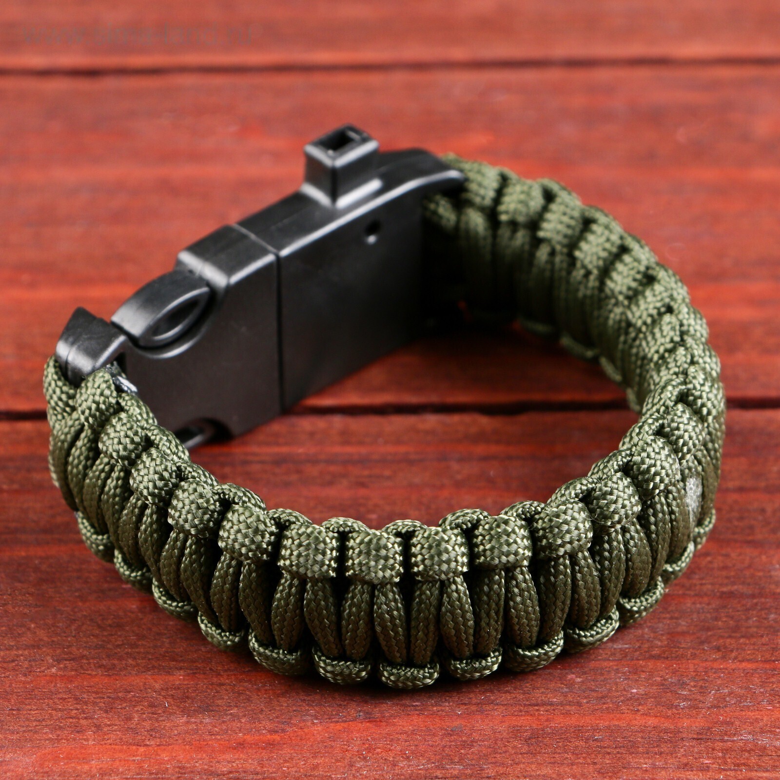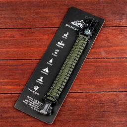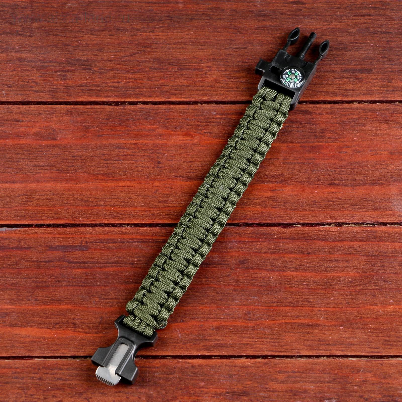 Браслет для выживания 4в1 (паракорд, компас, свисток, огниво), тёмно-зелёный, 25.5×2.5см, 2м