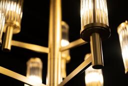 Люстра в латуни со стеклянными трубочками. Матовая латунь смотрится стильно и нарядно. люстра лаконично дополнит ваш интерьер. Стекляные трубочки играют светом, создавая эффект дисперсии. композиция придает особенную атмосферу уюта и тепла комнате. Люстра регулируется по высоте, цепь можно опустить до 2х метров.