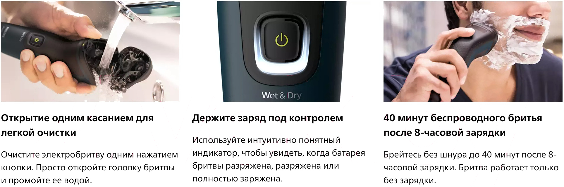 • Способ бритья сухое и влажное