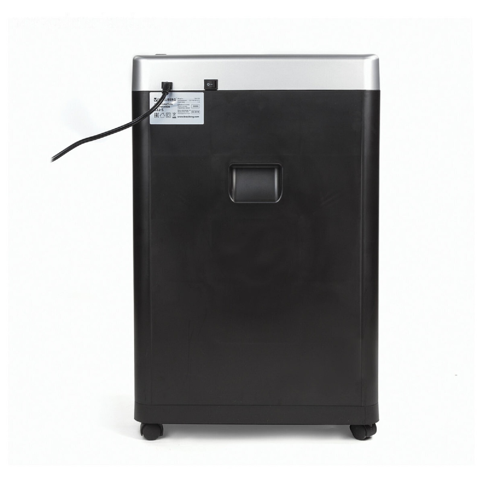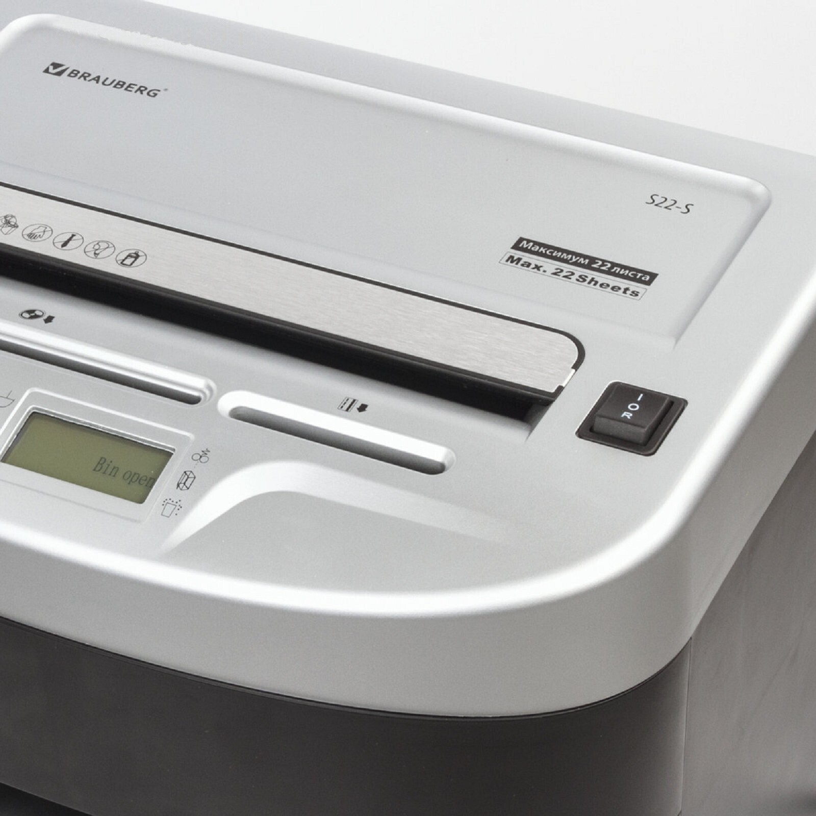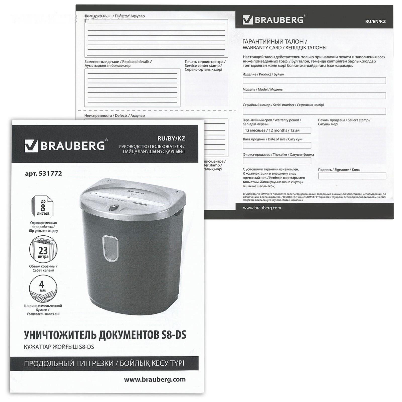Шредер BRAUBERG S22-S (Р-2), полоски 4 мм, 22 листа одновременно, скобы, пл.карты, CD, 35 л 486393