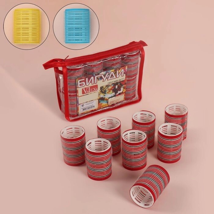 Бигуди "Липучка", d = 4,4 см, в косметичке, 8 шт, цвет МИКС