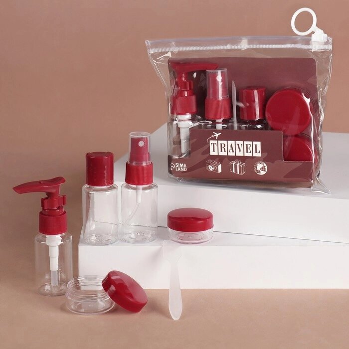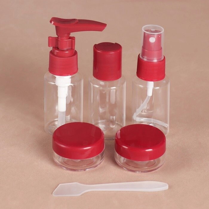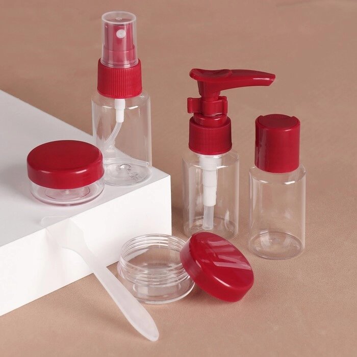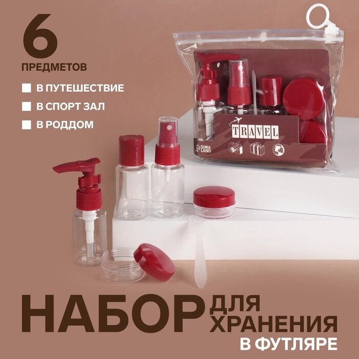 Набор для хранения, в чехле, 6 предметов, цвет прозрачный/бордовый