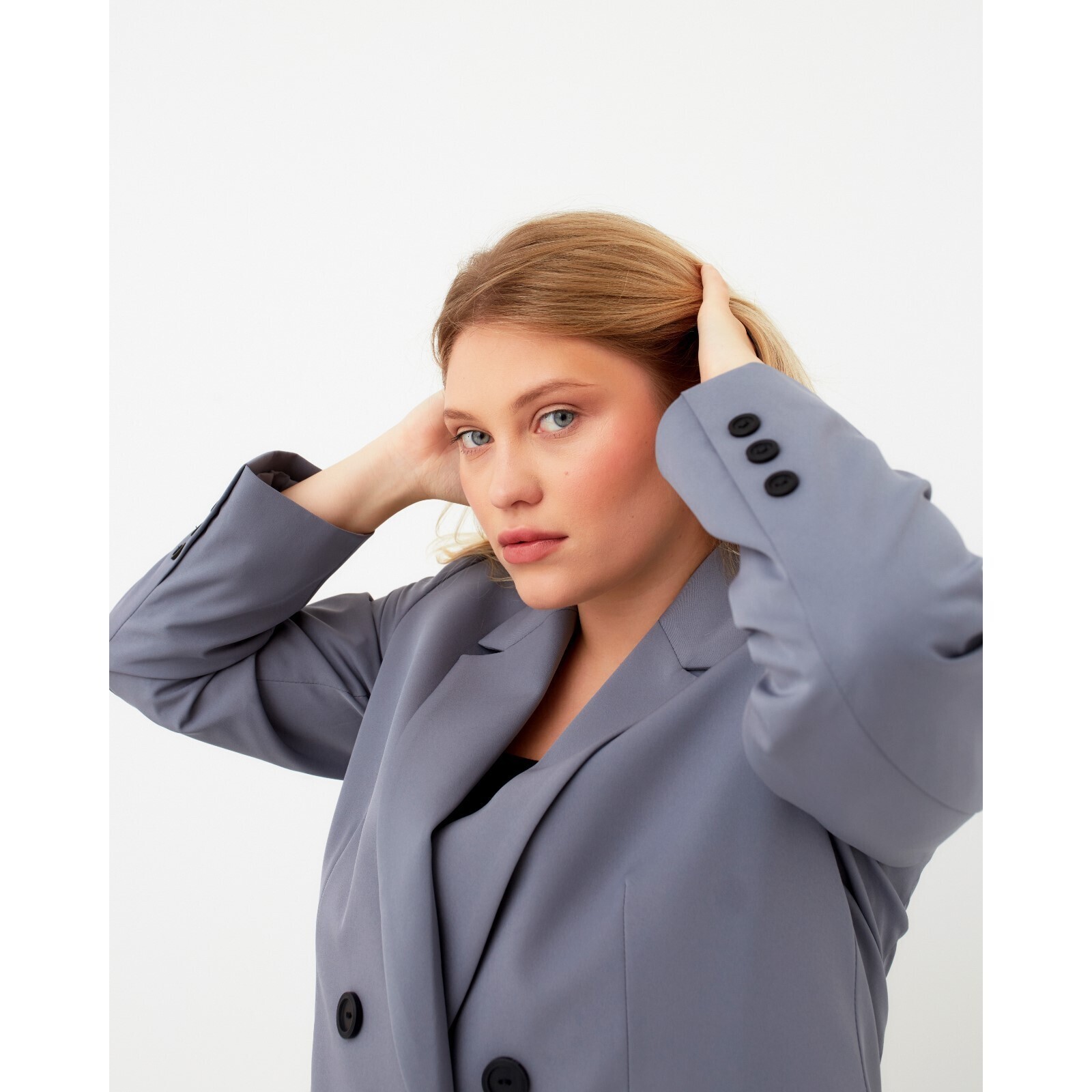 Пиджак женский двубортный MIST plus-size, размер 52, цвет серо-голубой